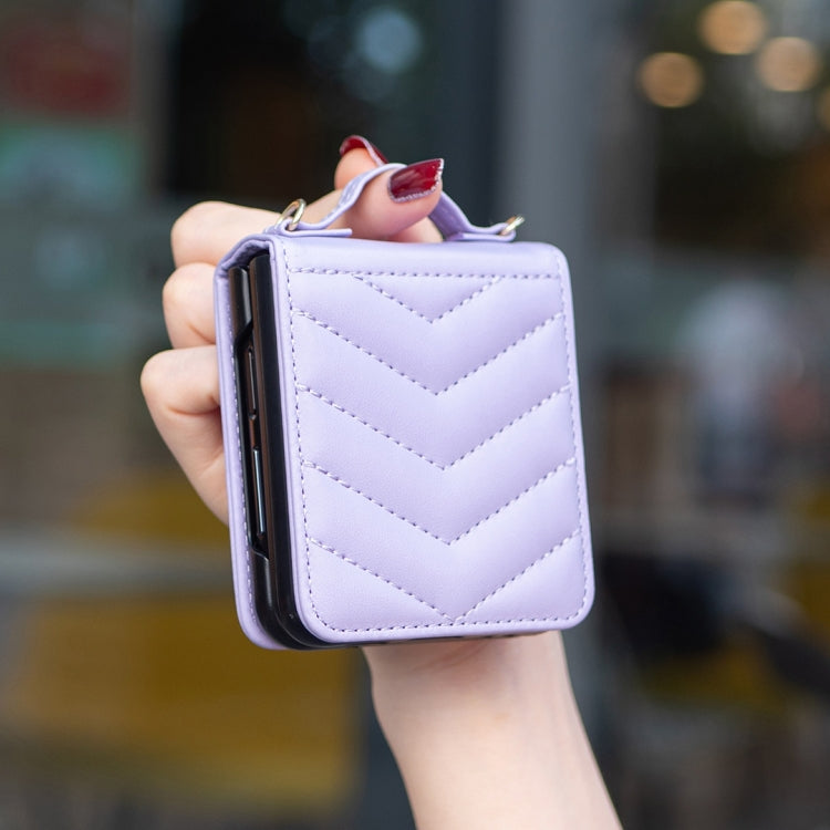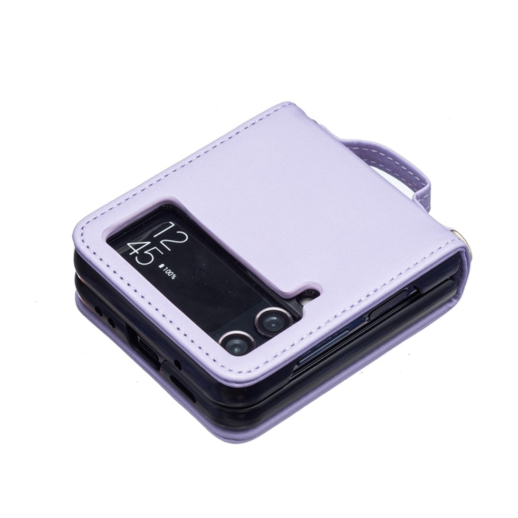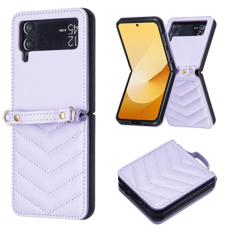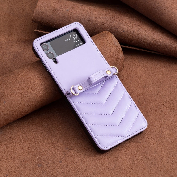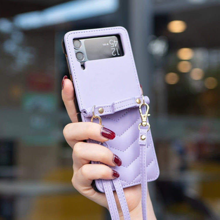 For Samsung Galaxy Z Flip4 Wave-shaped Crossbody Lanyard Leather Phone Case(Purple)