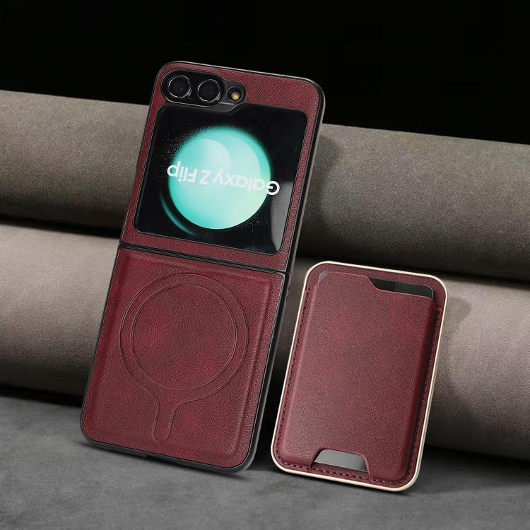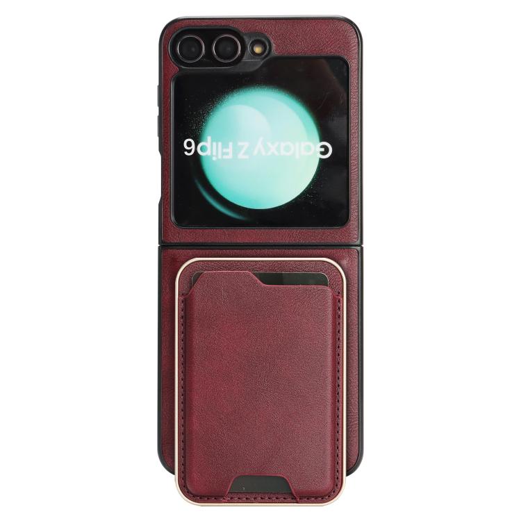 For Samsung Galaxy Z Flip6 / Flip7 FE Kalebol Slim MagSafe Ring Magnetic Card Bag Leather Phone Case(Red)