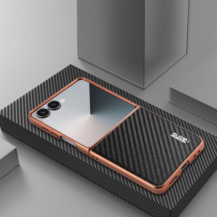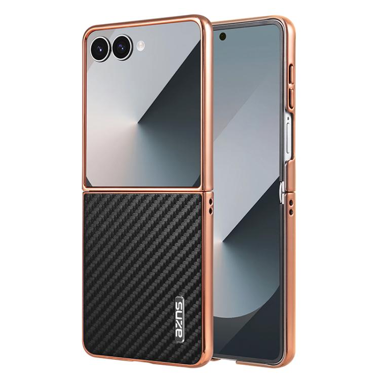 For Samsung Galaxy Z Flip7 5G AZNS Electroplated Edge Carbon Fiber Texture Phone Case(Black)