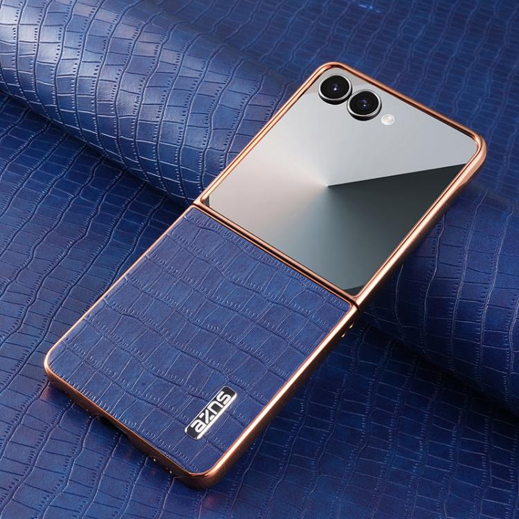 For Samsung Galaxy Z Flip7 5G AZNS Electroplated Frame Crocodile Texture Full Coverage Phone Case(Blue)