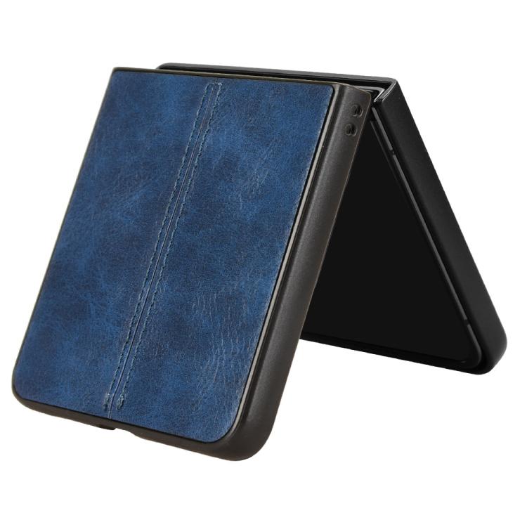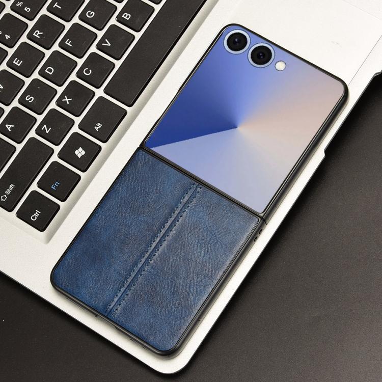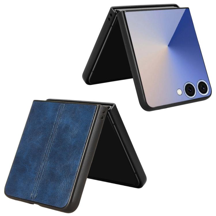 For Samsung Galaxy Z Flip7 5G Cow Pattern Sewing Back Cover Phone Case(Blue)