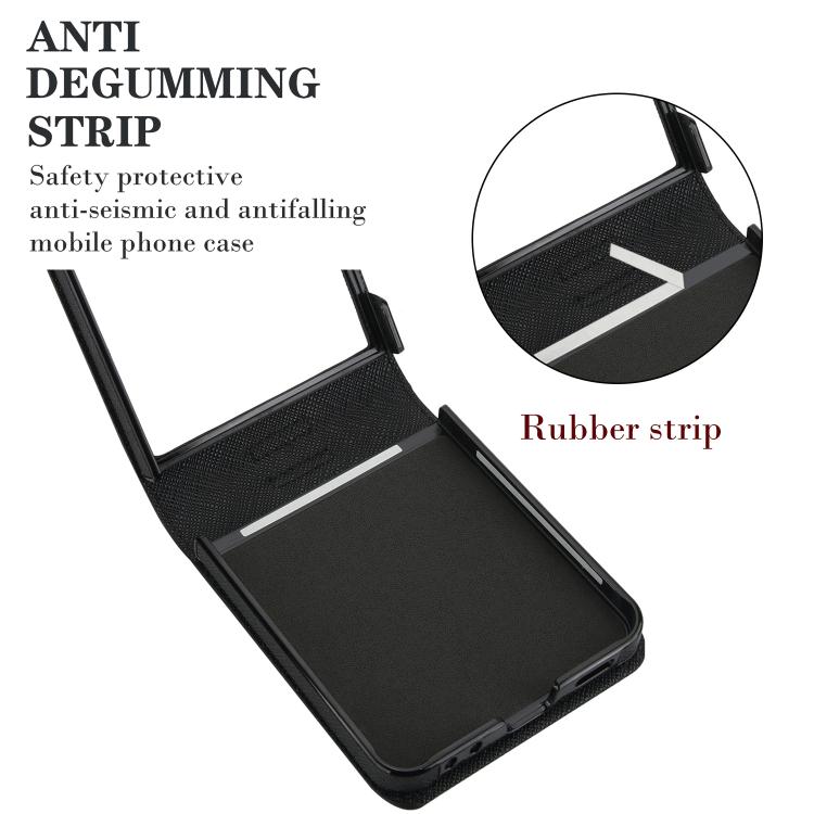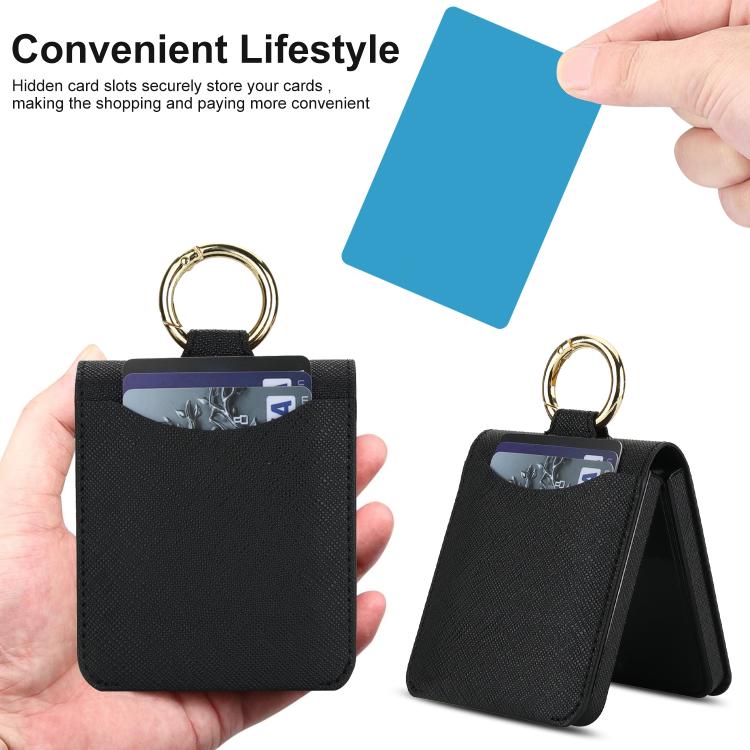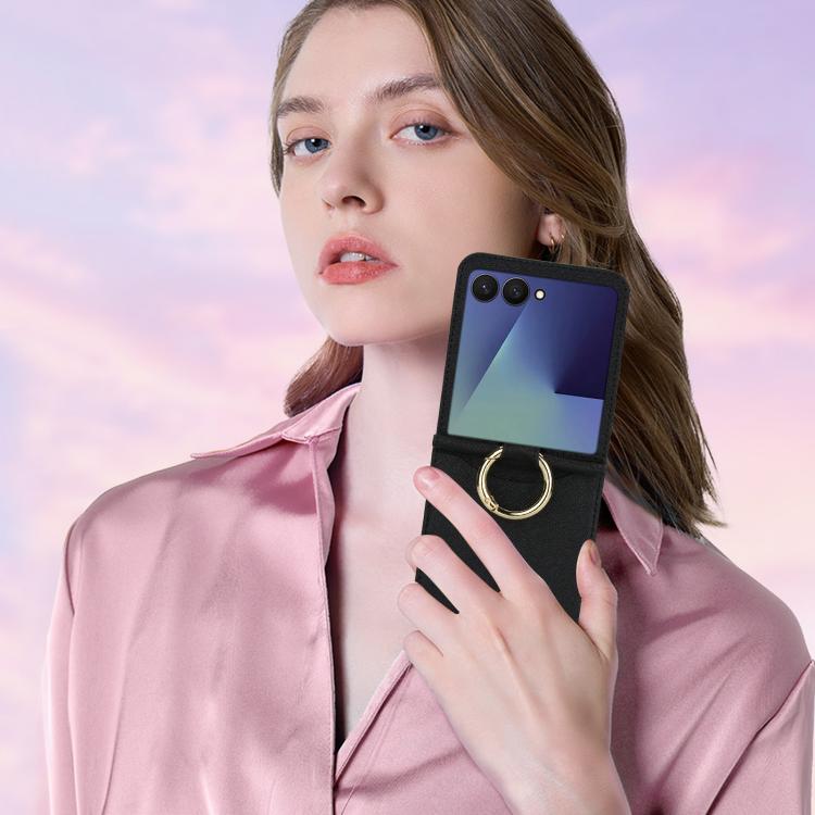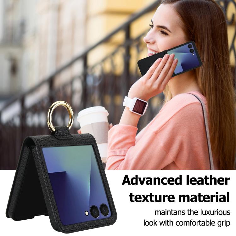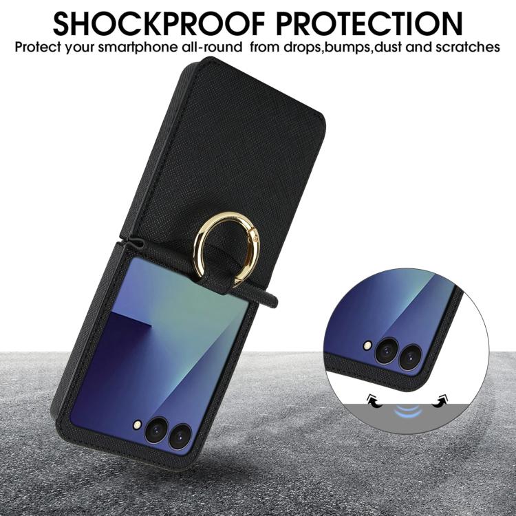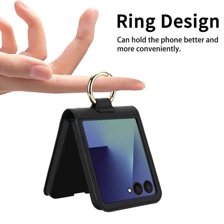 For Samsung Galaxy Z Flip7 5G Cross Texture Ring Design Card Slot Leather Phone Case(Black)