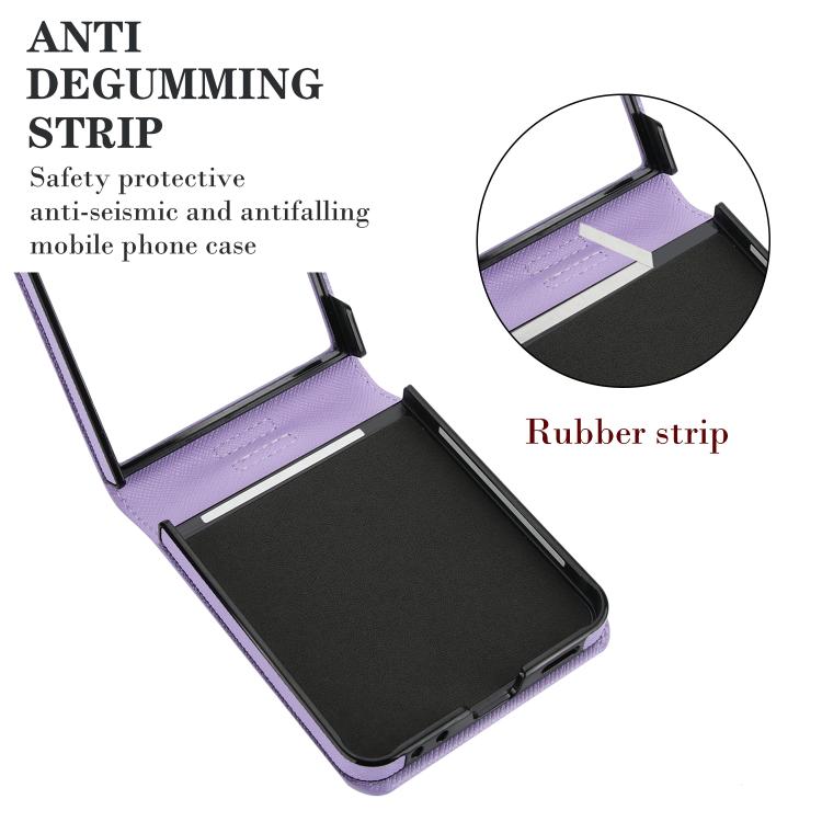 For Samsung Galaxy Z Flip7 5G Cross Texture Ring Design Card Slot Leather Phone Case(Purple)