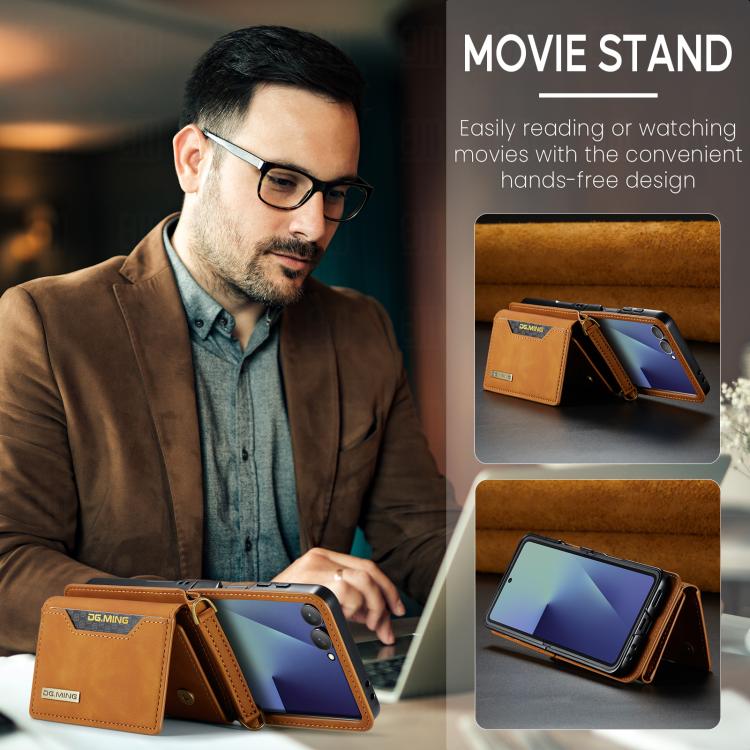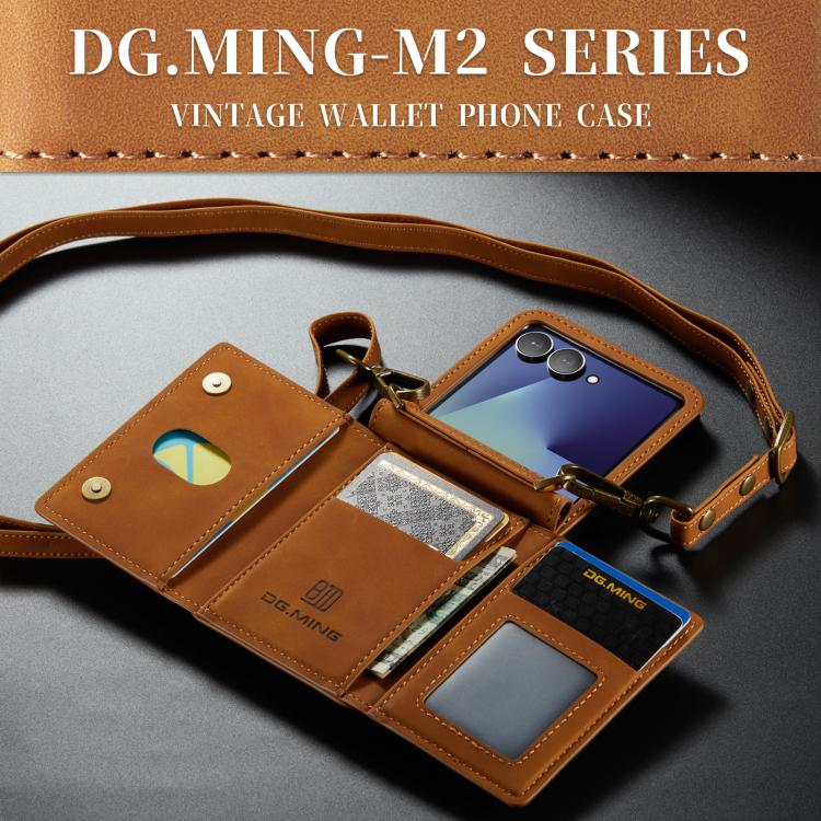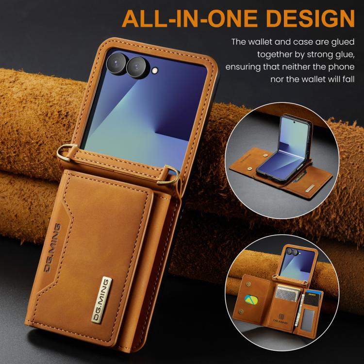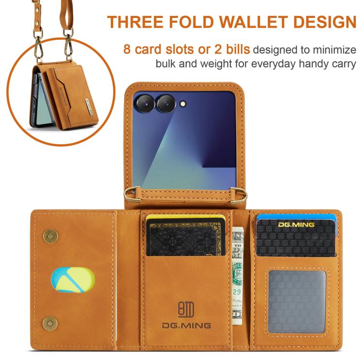 For Samsung Galaxy Z Flip7 5G DG.MING M2 Series 3-Fold Multi Card Bag hybrid Magnetic Phone Case with Long Lanyard(Brown)
