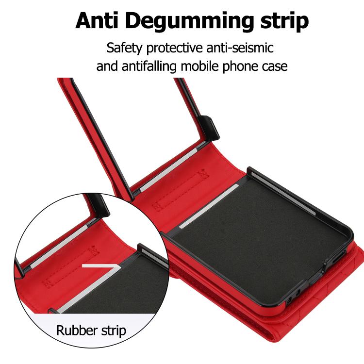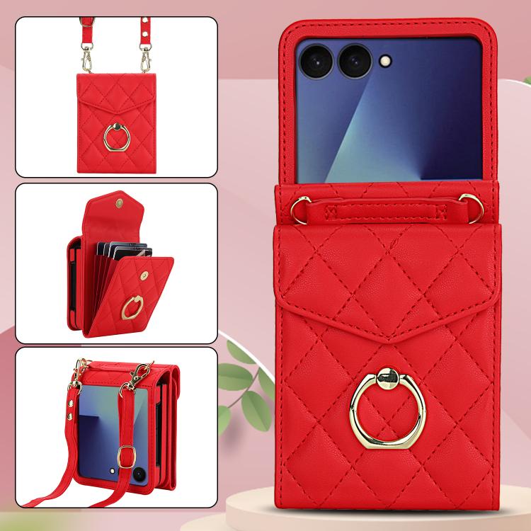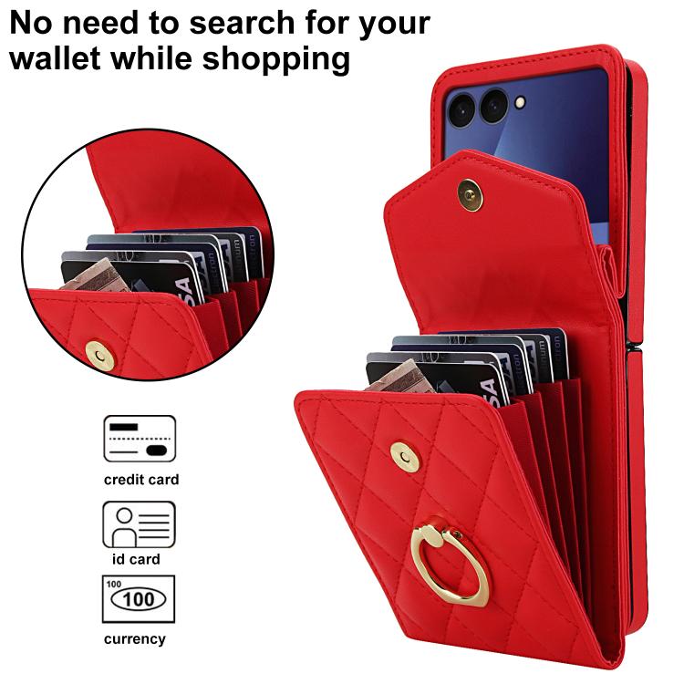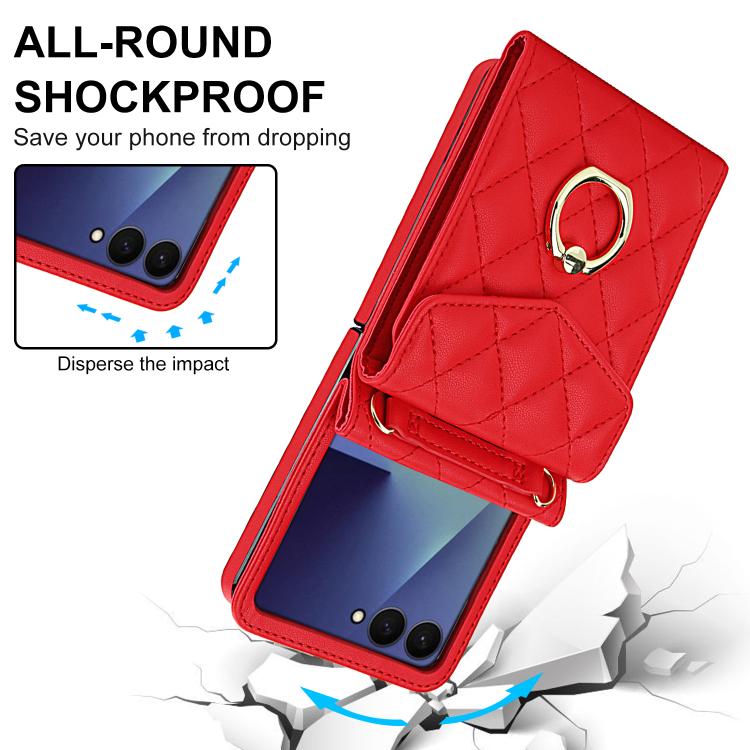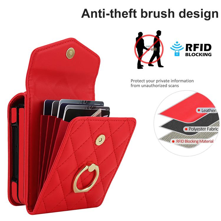 For Samsung Galaxy Z Flip7 5G Diamond Lattice RFID Card Slot Phone Case with Ring Holder(Red)