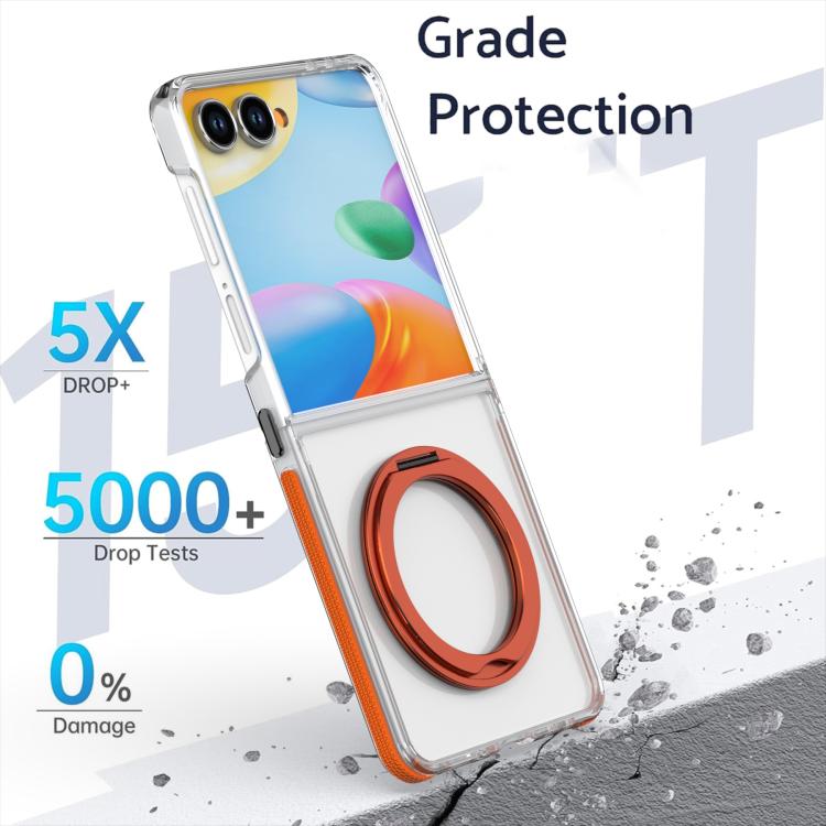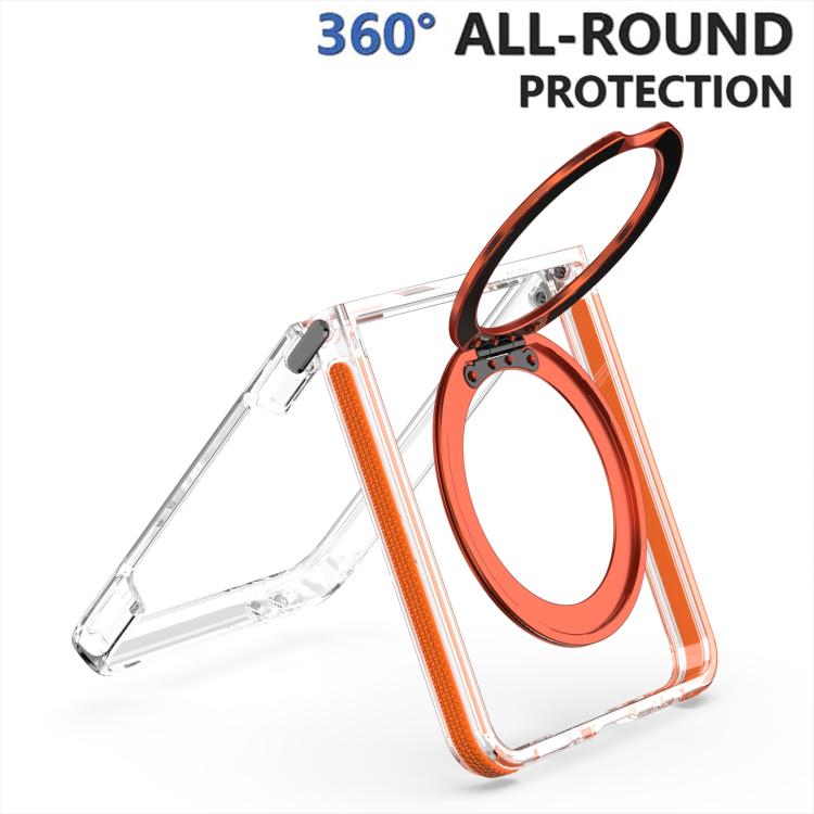 For Samsung Galaxy Z Flip7 5G Dual-Color Clear Acrylic Hybrid TPU 360 Rotating Holder Phone Case(Orange)