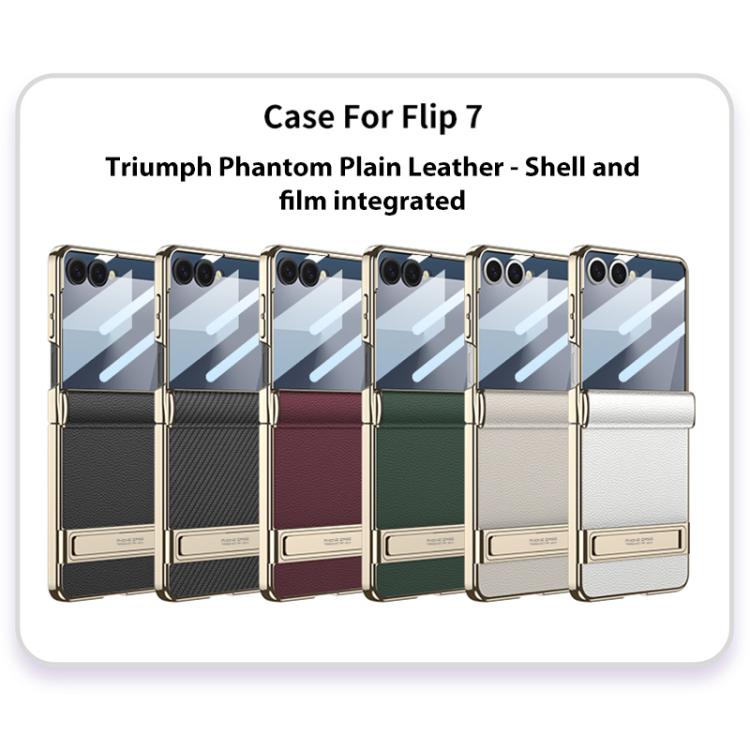 For Samsung Galaxy Z Flip7 5G GKK Integrated Triumph Phantom Magnetic Leather Phone Case with Holder(White)