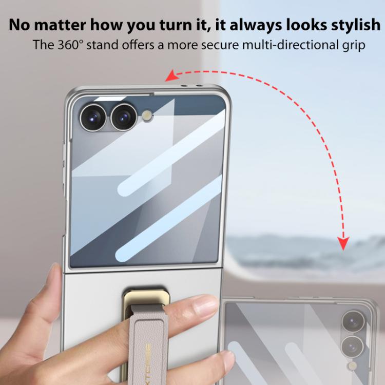 For Samsung Galaxy Z Flip7 5G GKK Integrated Ultra-thin Full Cover Wristband Phone Case with Rotating Bracket(Black)