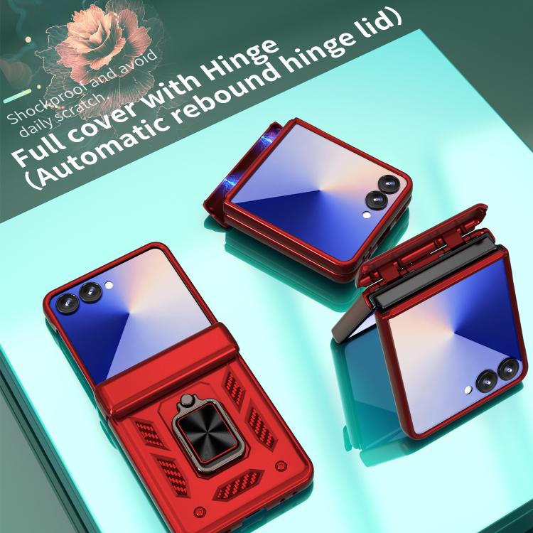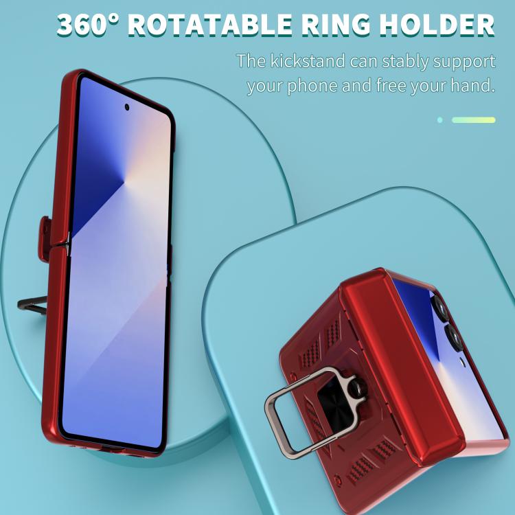 For Samsung Galaxy Z Flip7 5G Kalebol Sliding Window Hinge Phone Case with Ring Stand(Red)