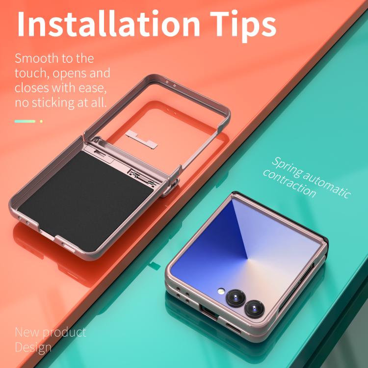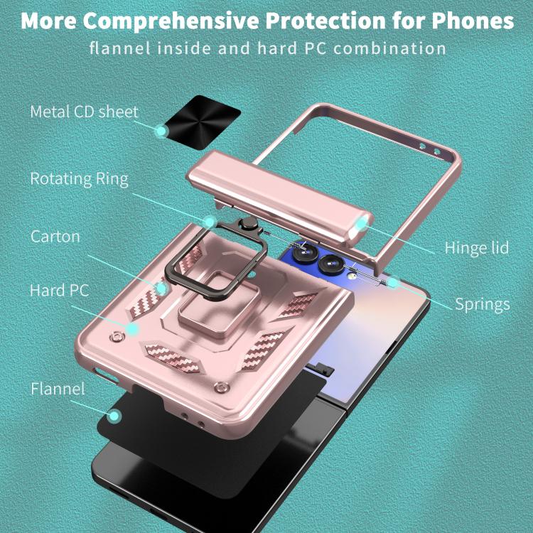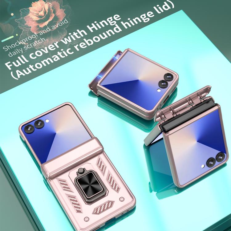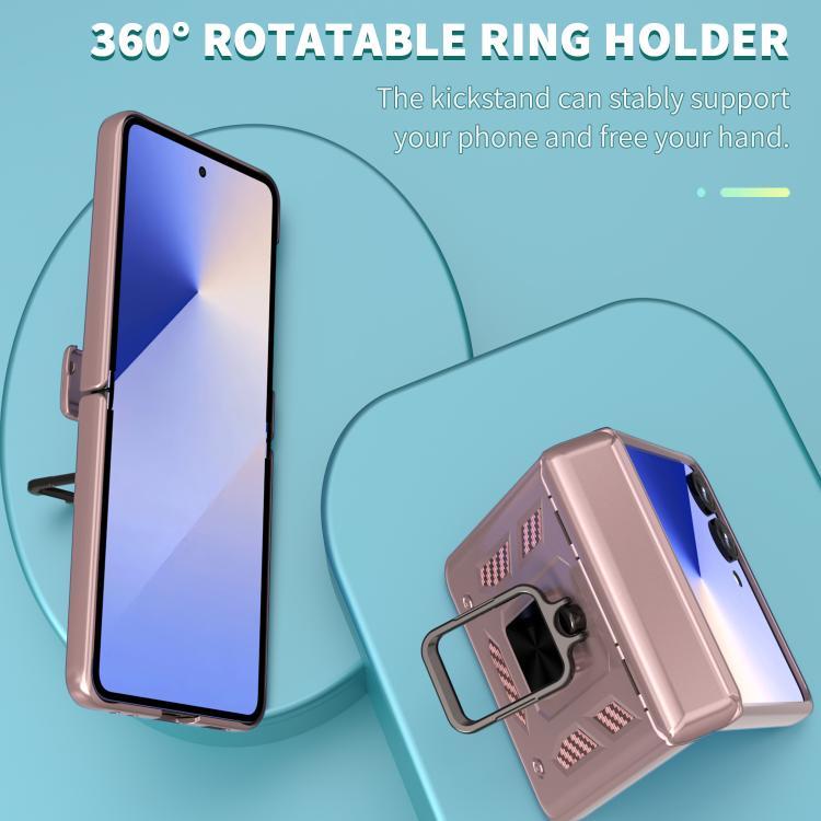 For Samsung Galaxy Z Flip7 5G Kalebol Sliding Window Hinge Phone Case with Ring Stand(Rose Gold)