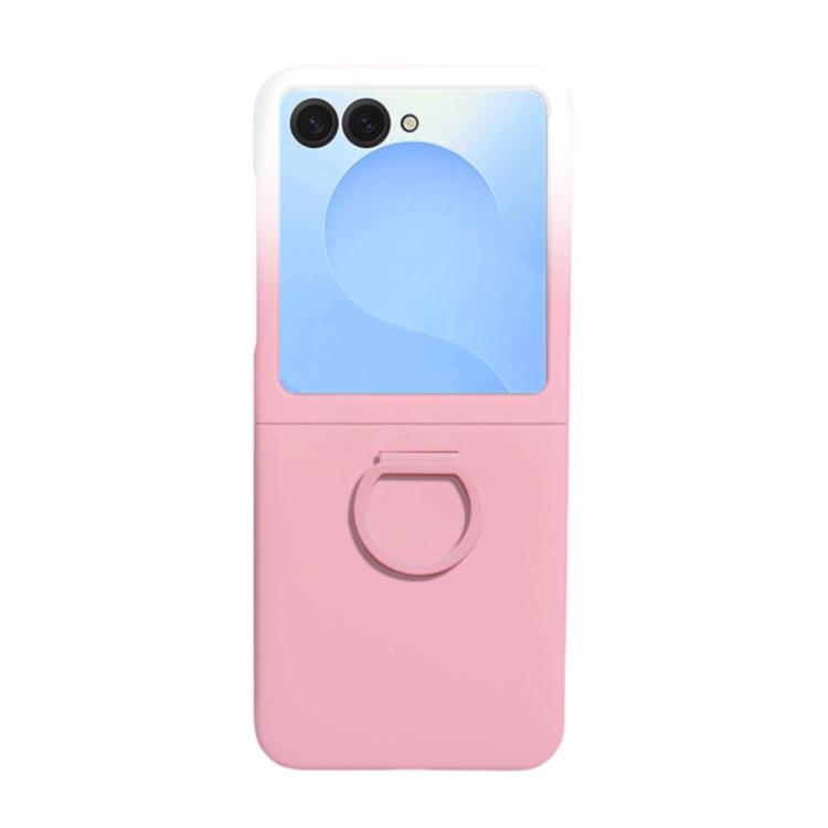 For Samsung Galaxy Z Flip7 5G Large Window Ring Holder Skin Feel PC Phone Case(Gradient Pink)