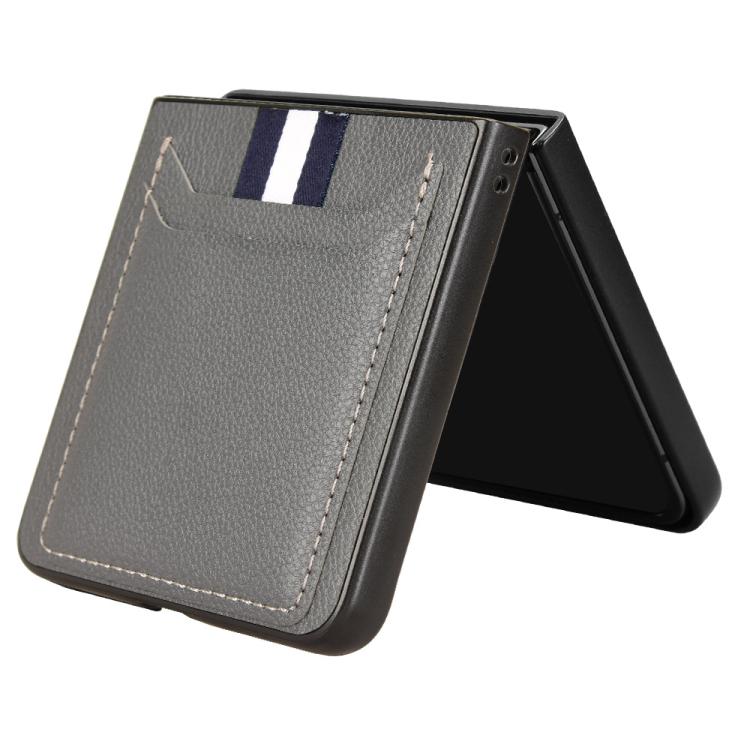 For Samsung Galaxy Z Flip7 5G Litchi Texture Card Slots Back Cover Phone Case(Grey)