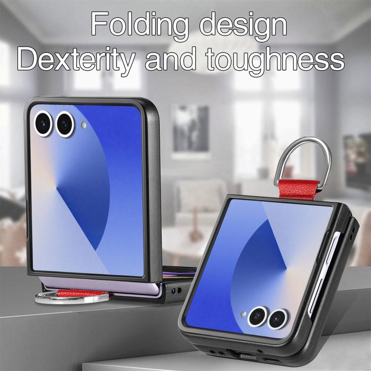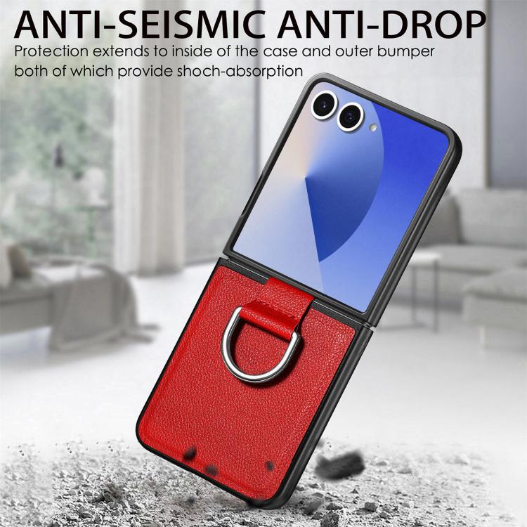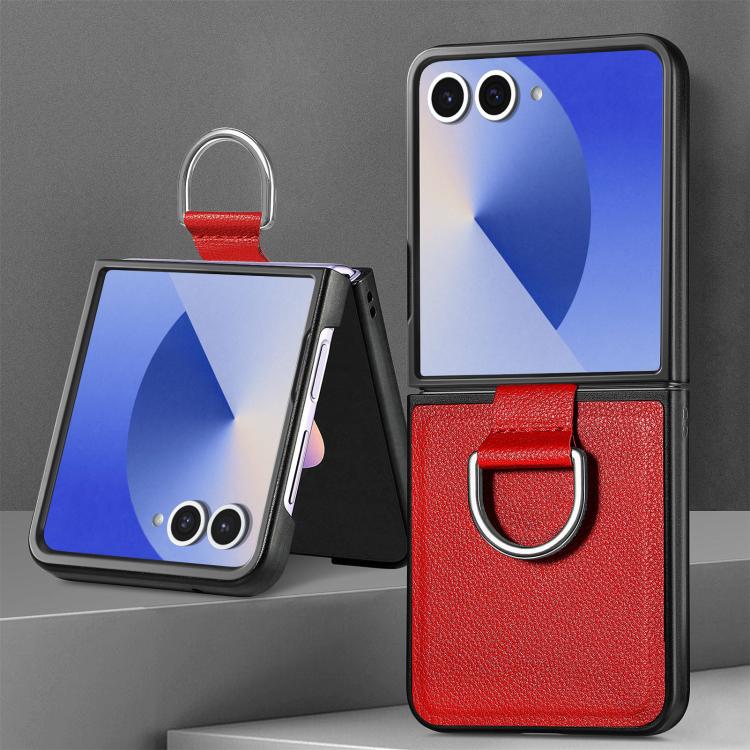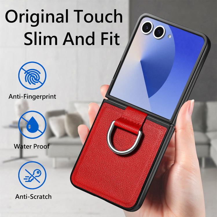 For Samsung Galaxy Z Flip7 5G Litchi Texture Leather Ring Phone Case(Red)