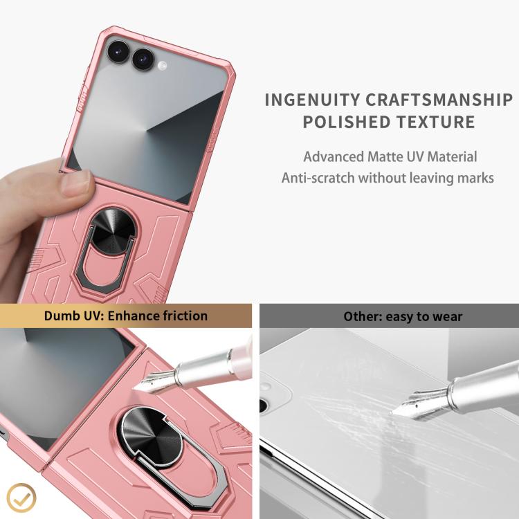 For Samsung Galaxy Z Flip7 5G Matte UV Armor Ring Shockproof Phone Case(Pink)