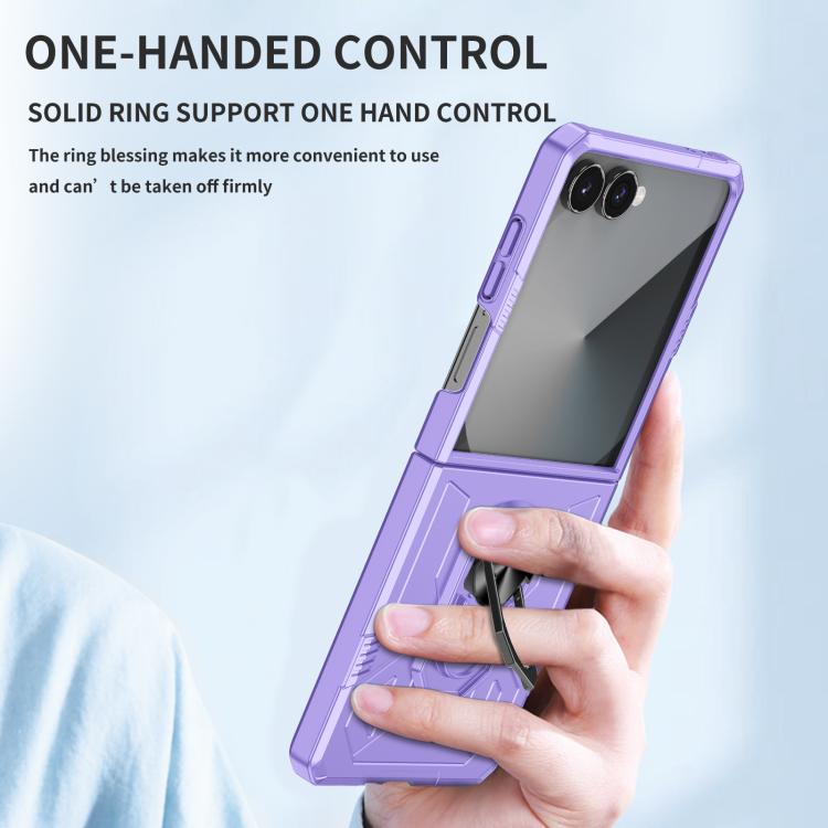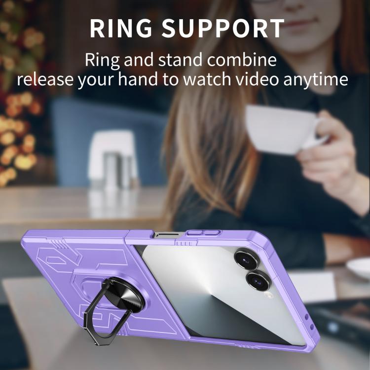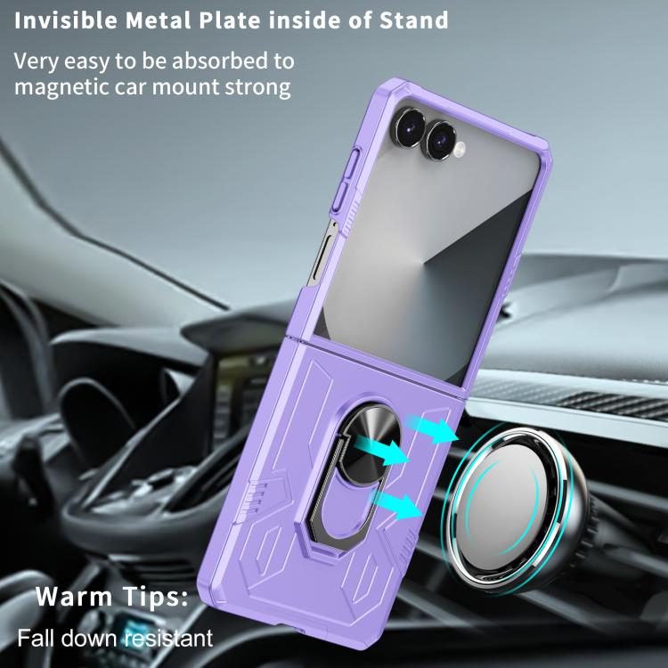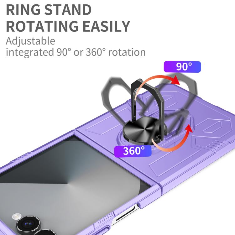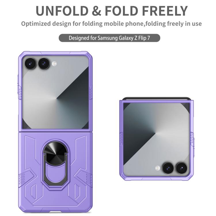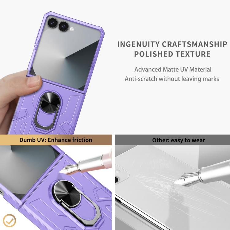 For Samsung Galaxy Z Flip7 5G Matte UV Armor Ring Shockproof Phone Case(Purple)