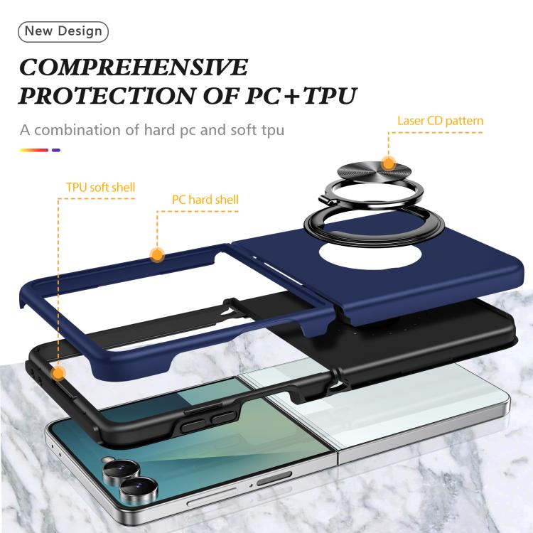 For Samsung Galaxy Z Flip7 5G PC + TPU Magnetic Phone Case with Invisible Ring Holder(Navy Blue)
