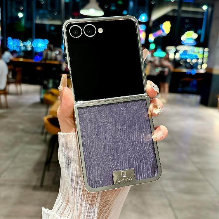 For Samsung Galaxy Z Flip7 5G Plating Frame Glitter Paper Nameplate Full Coverage Phone Case(Ripples Purple)