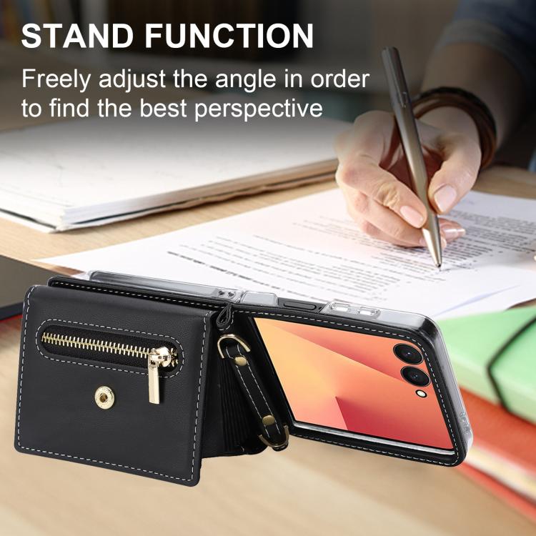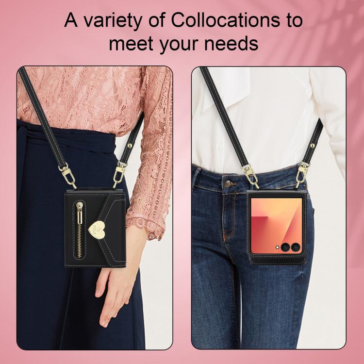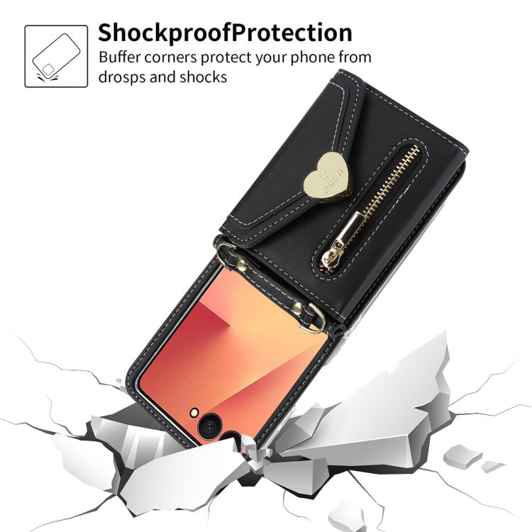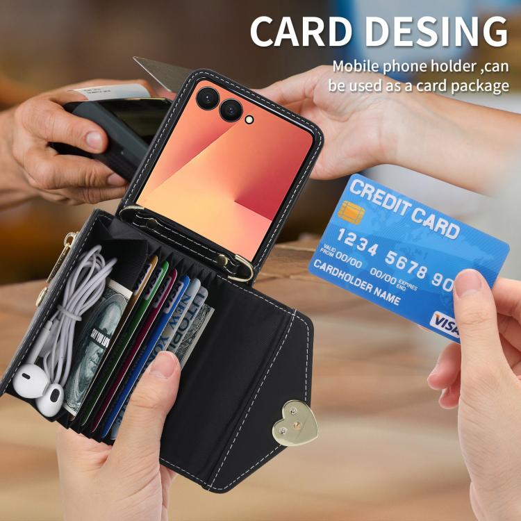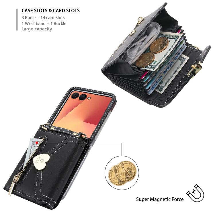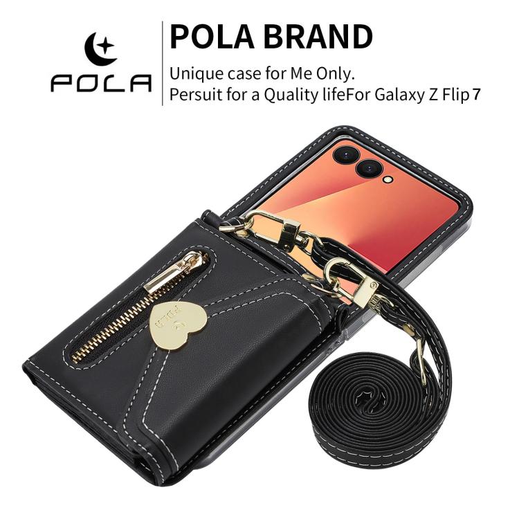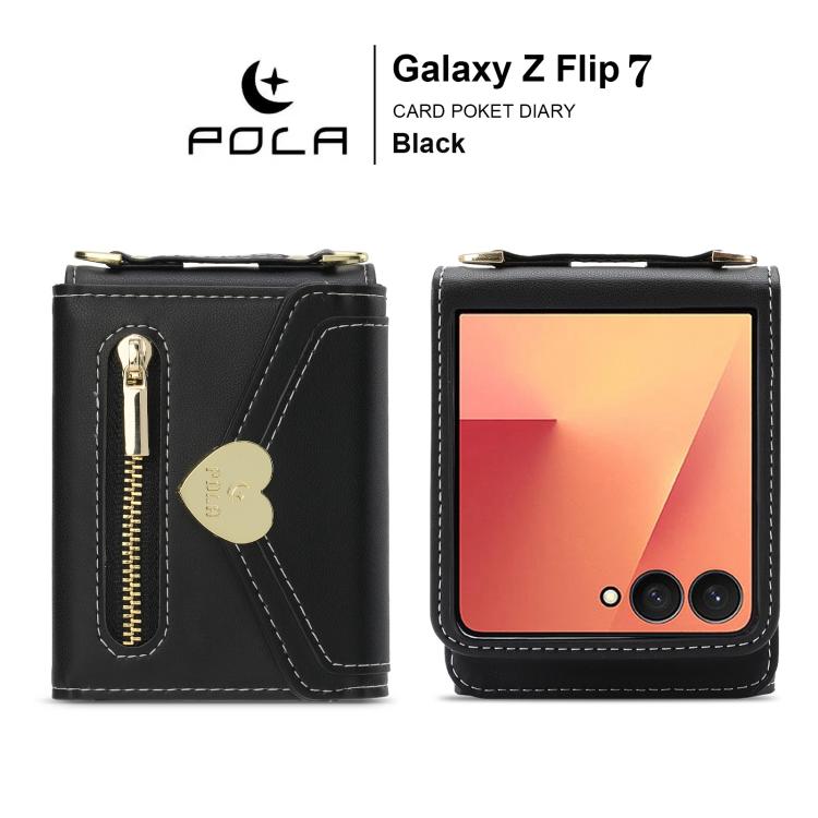 For Samsung Galaxy Z Flip7 5G POLA Love Buckle Multi-Card Slots Zipper Wallet Phone Case(Black)