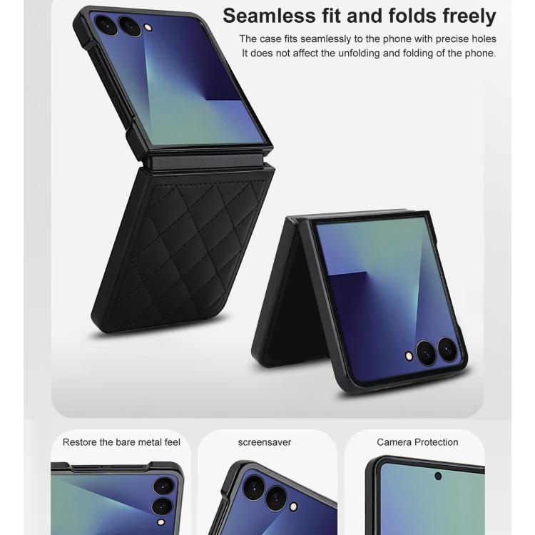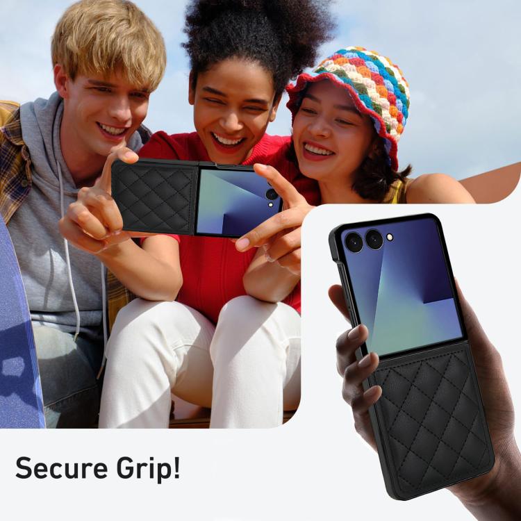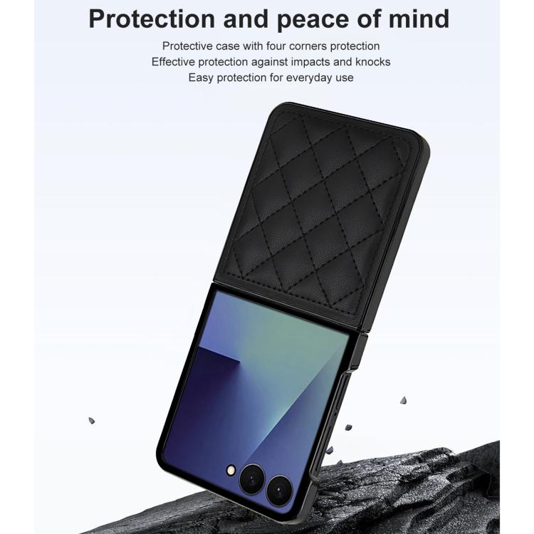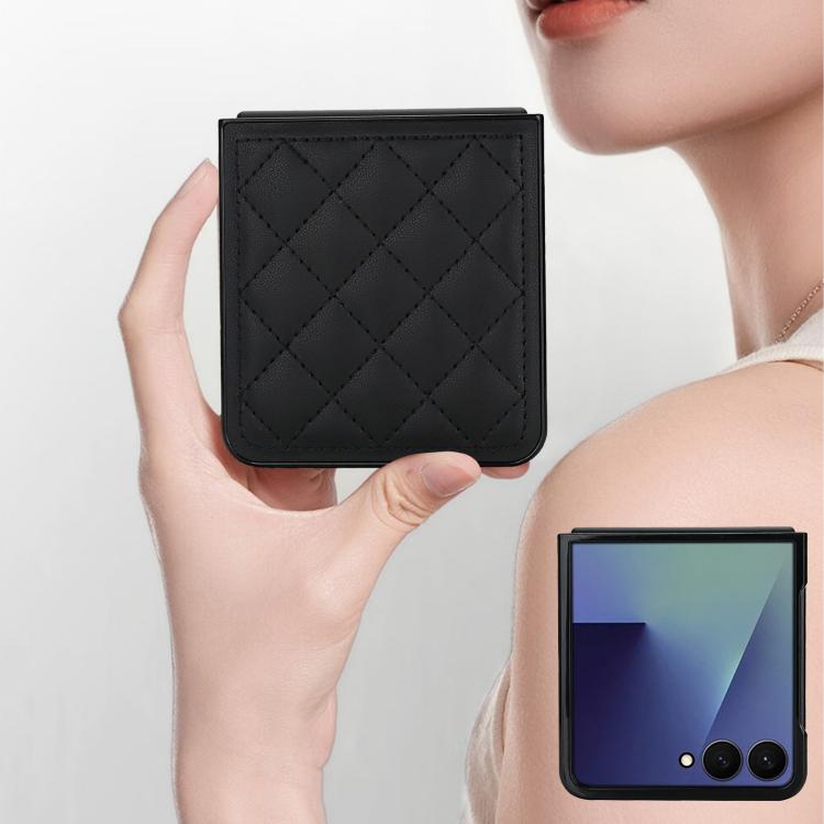 For Samsung Galaxy Z Flip7 5G Rhombic Fold Leather Phone Case(Black)