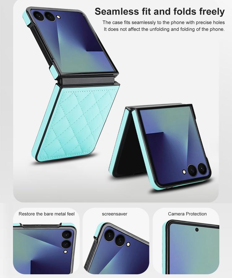 For Samsung Galaxy Z Flip7 5G Rhombic Fold Leather Phone Case(Green)