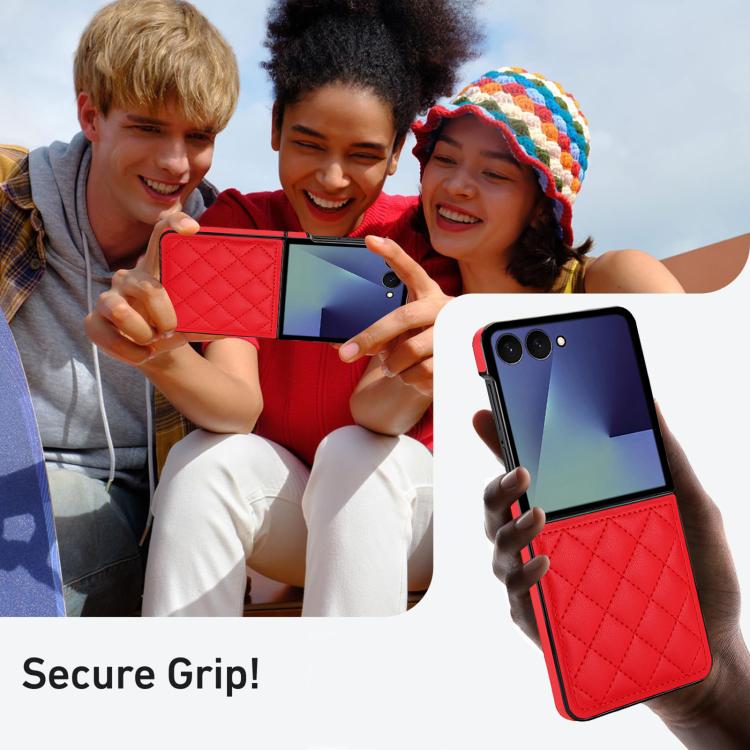 For Samsung Galaxy Z Flip7 5G Rhombic Fold Leather Phone Case(Red)