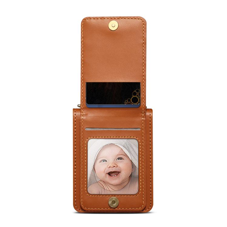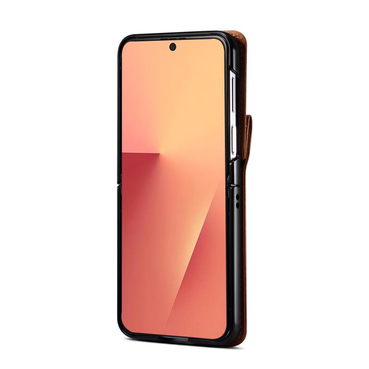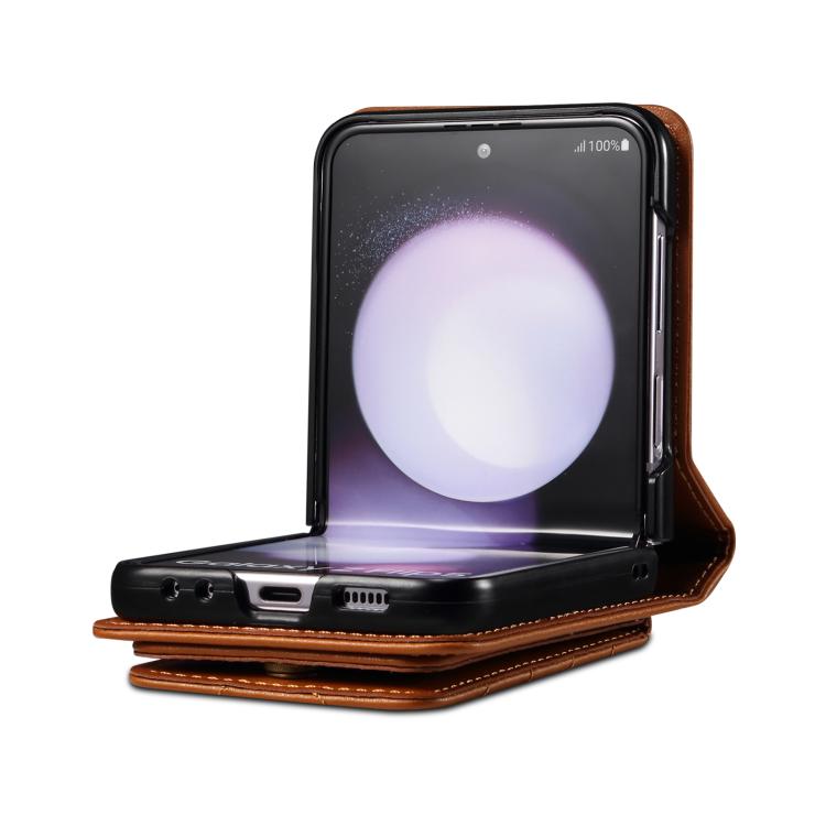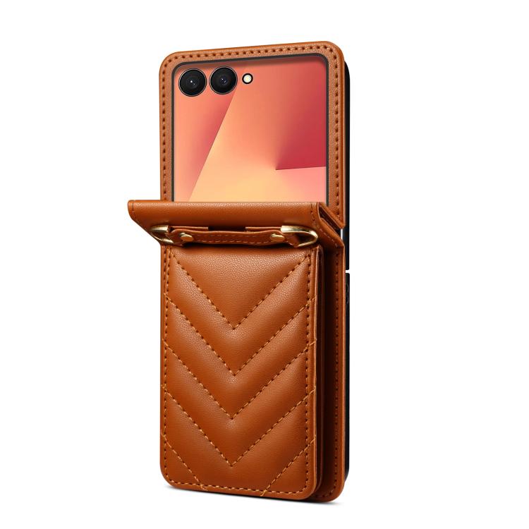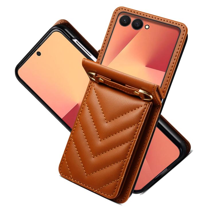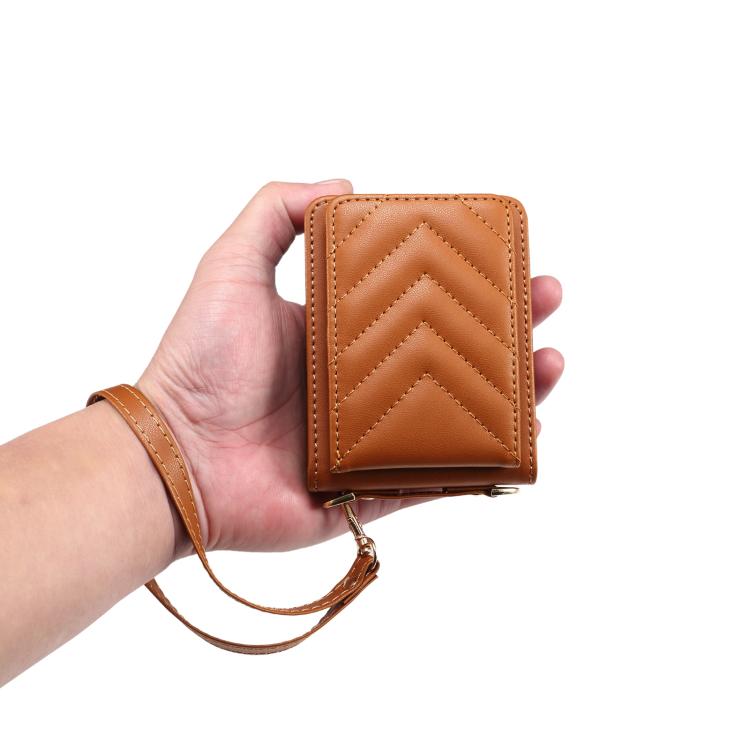 For Samsung Galaxy Z Flip7 5G Rhombic Folding Leather Phone Case with Long Lanyard(Brown)