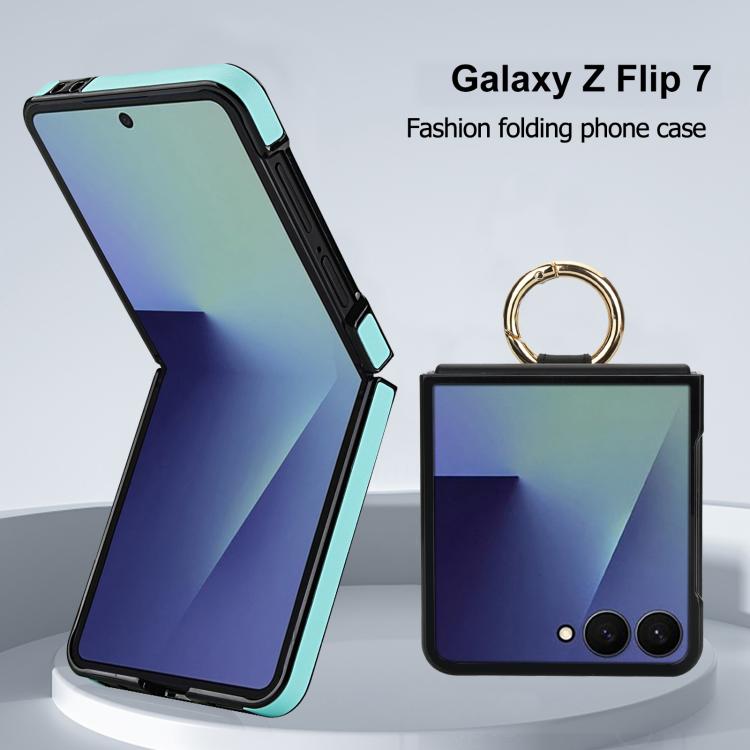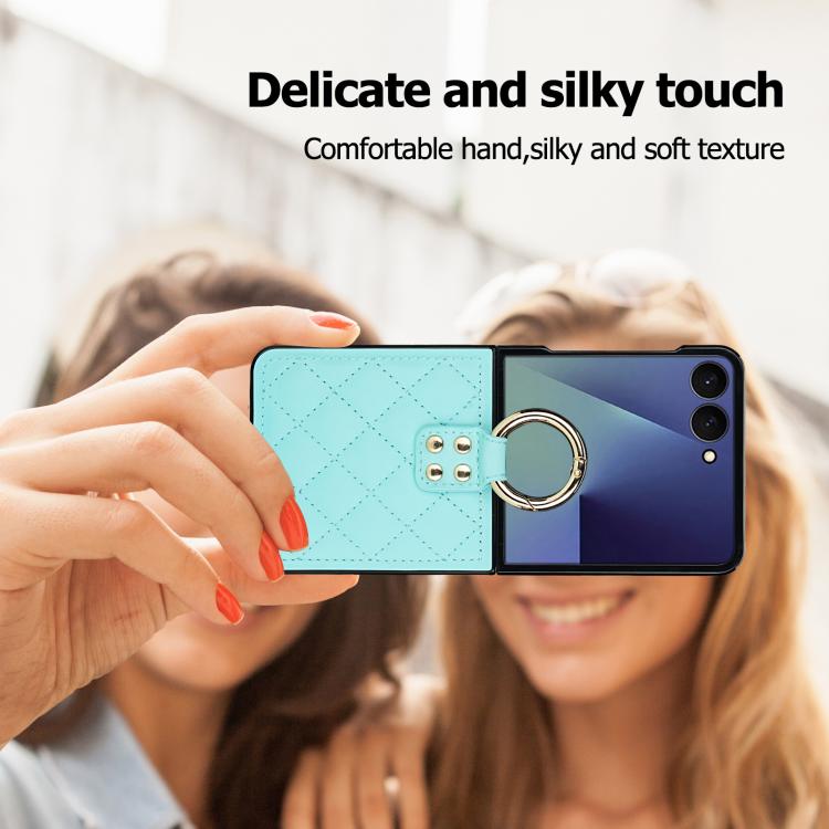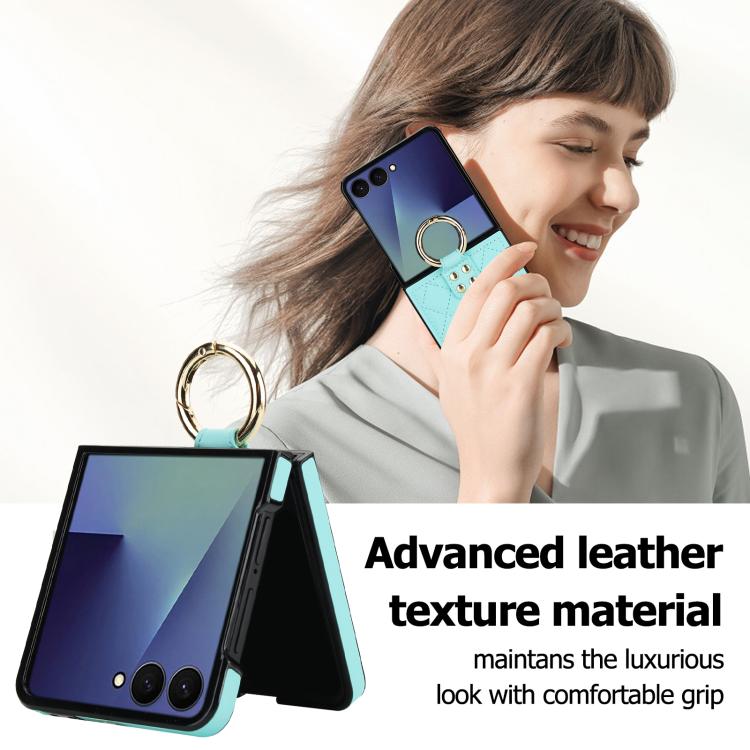 For Samsung Galaxy Z Flip7 5G Rhombic Texture Ring Holder PU Phone Case(Green)
