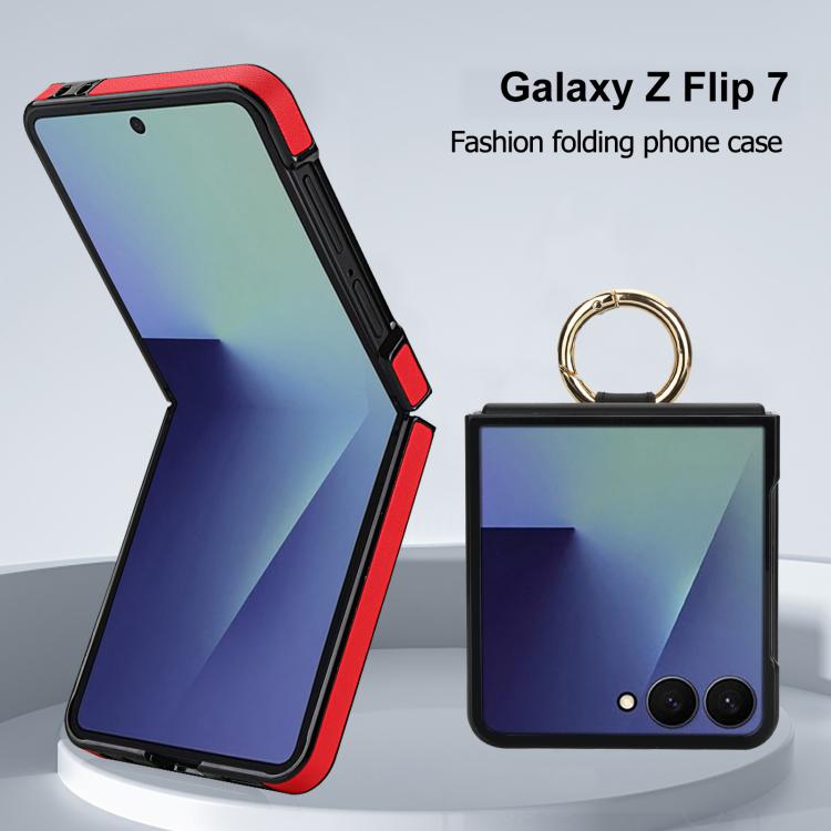 For Samsung Galaxy Z Flip7 5G Rhombic Texture Ring Holder PU Phone Case(Red)