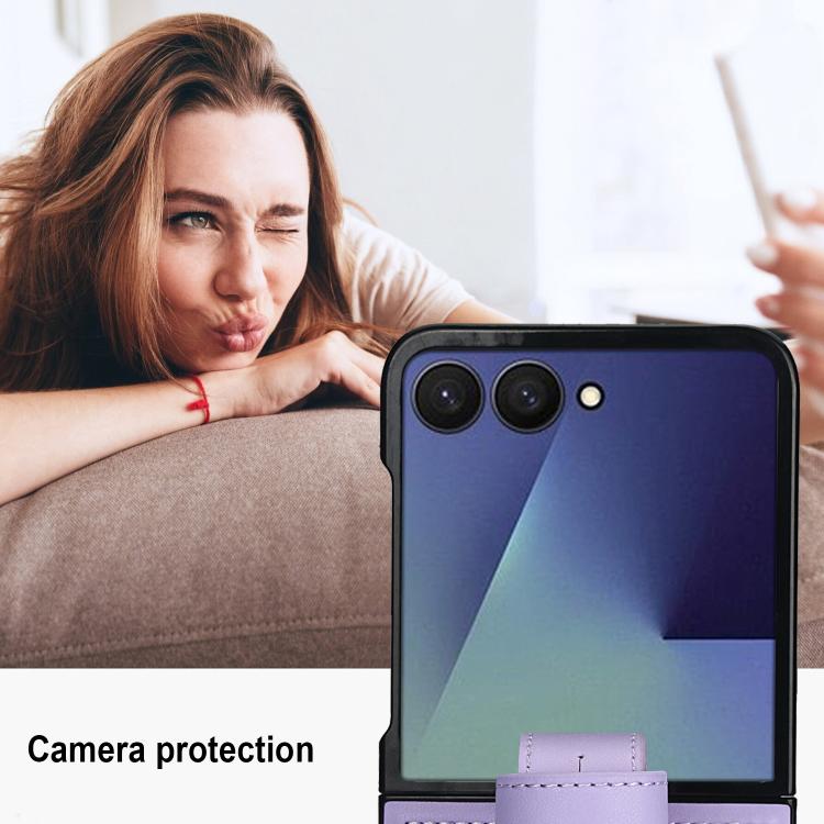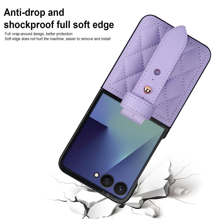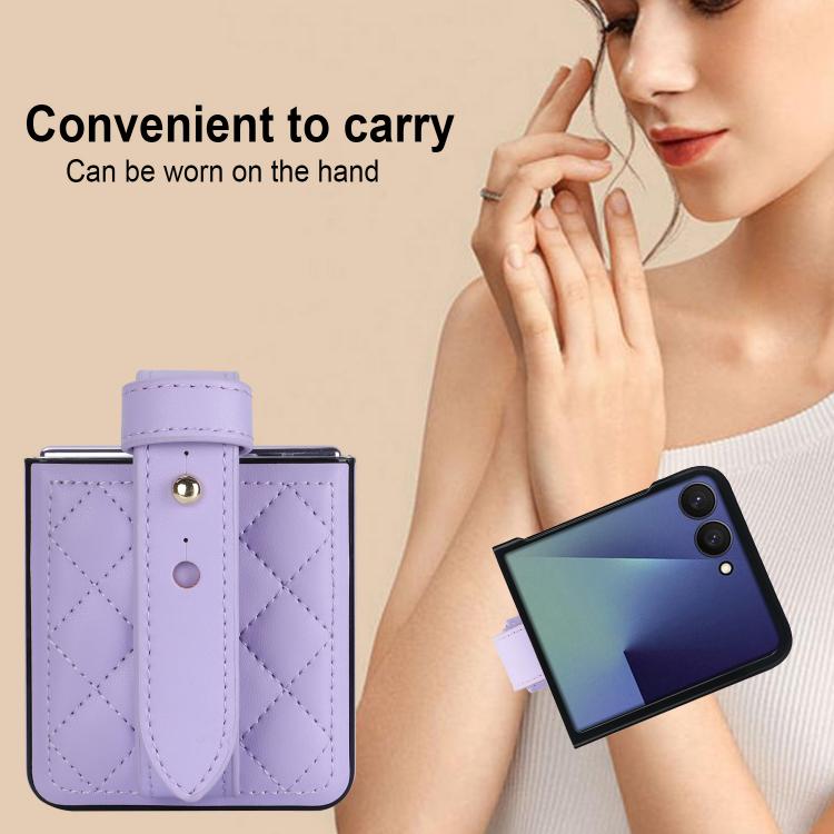 For Samsung Galaxy Z Flip7 5G Rhombic Texture Wristband PU Phone Case(Purple)