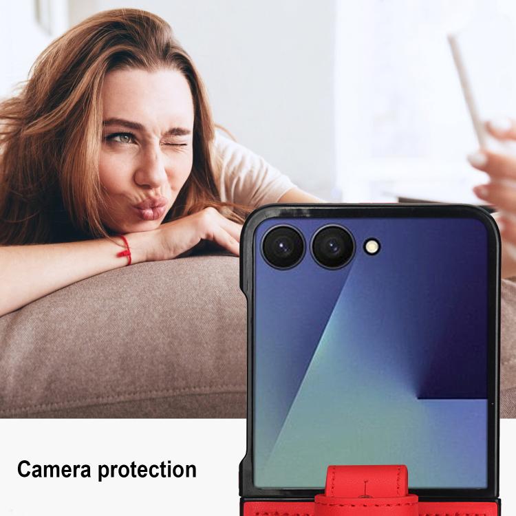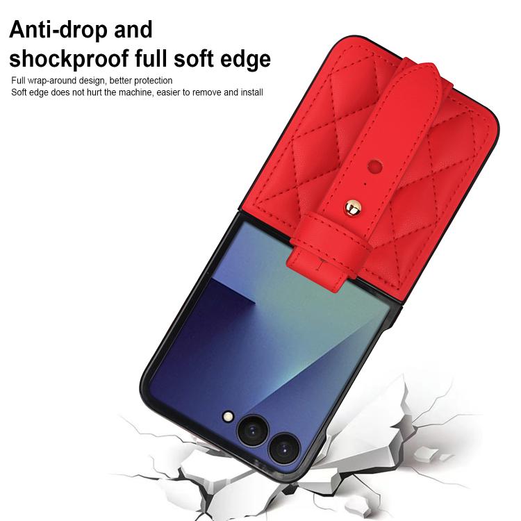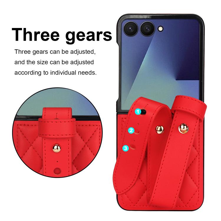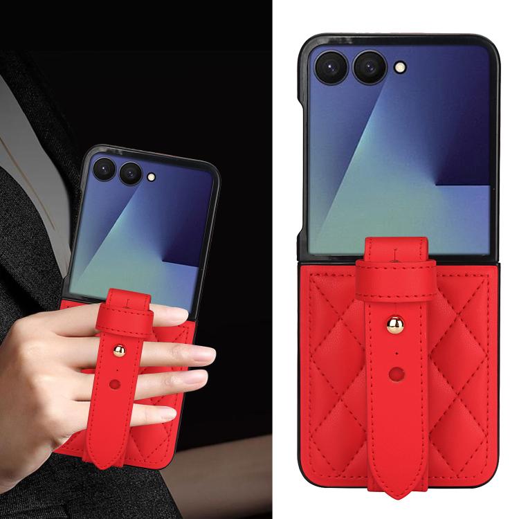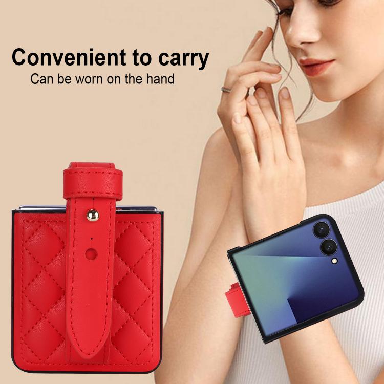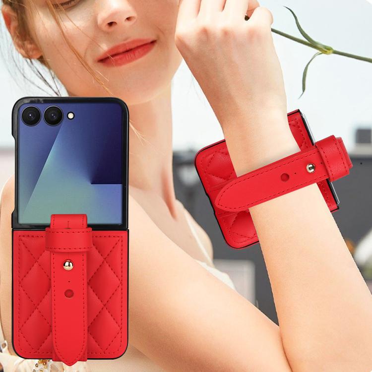 For Samsung Galaxy Z Flip7 5G Rhombic Texture Wristband PU Phone Case(Red)