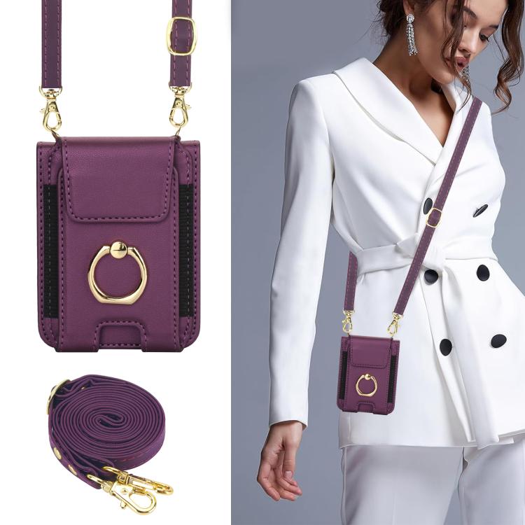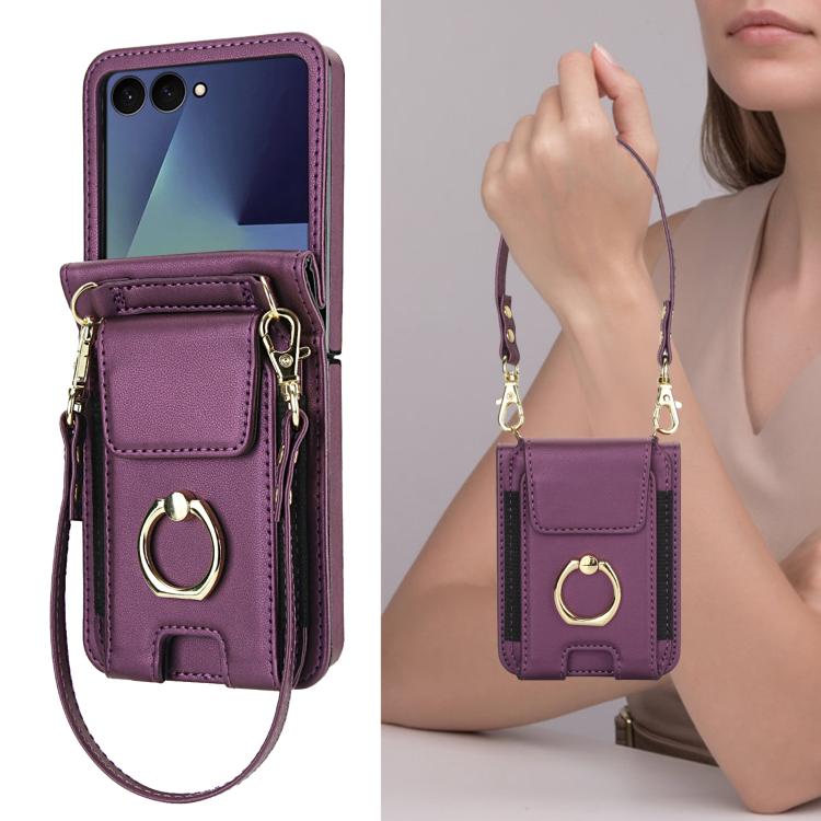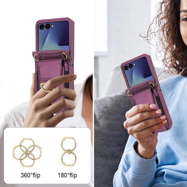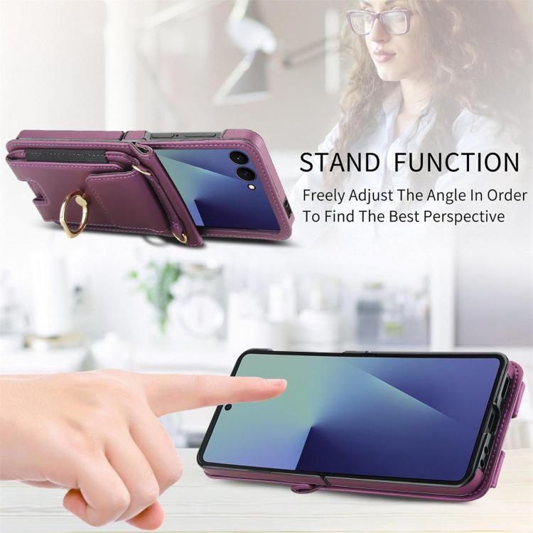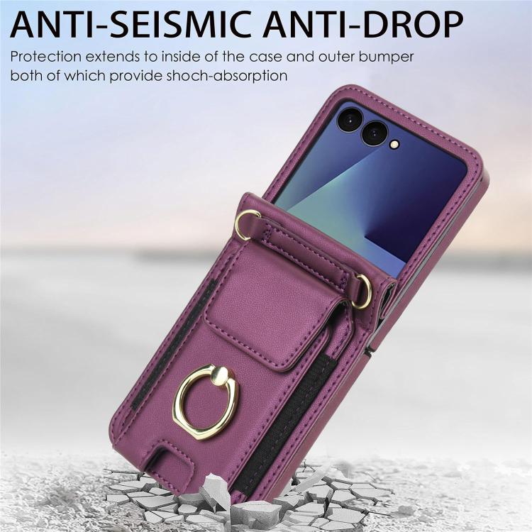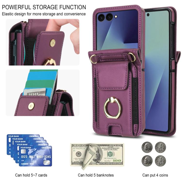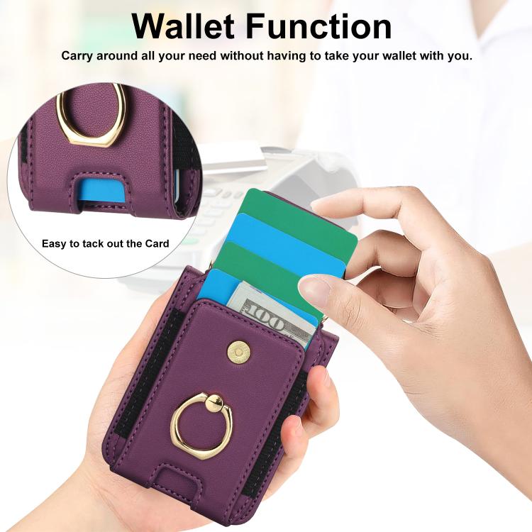 For Samsung Galaxy Z Flip7 5G Ring Holder Wallet Card Slot Leather Phone Case(Deep Purple)