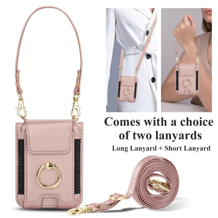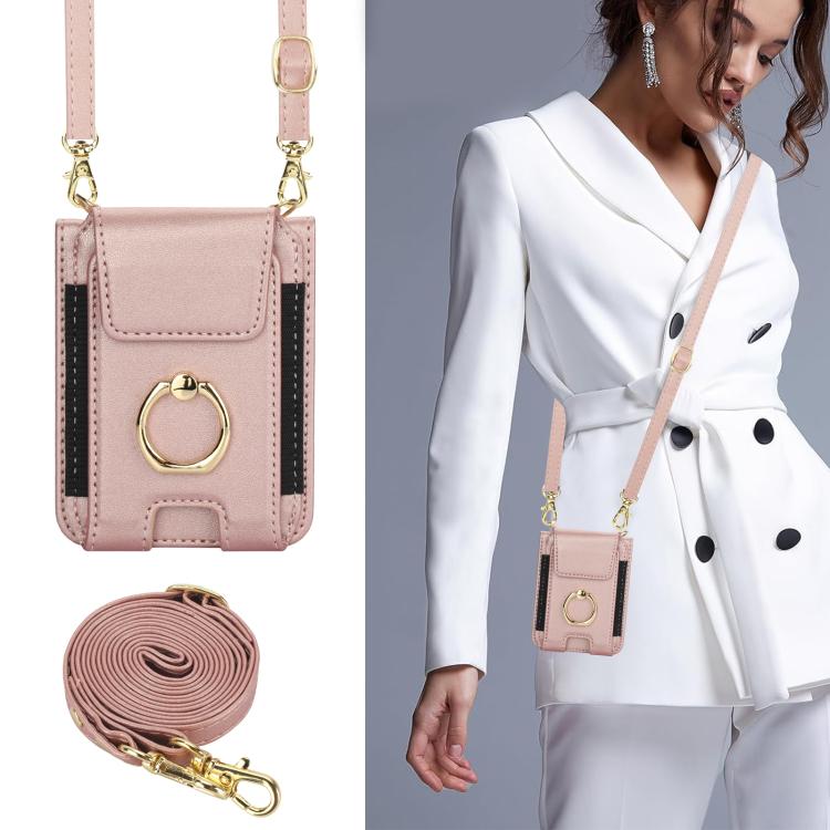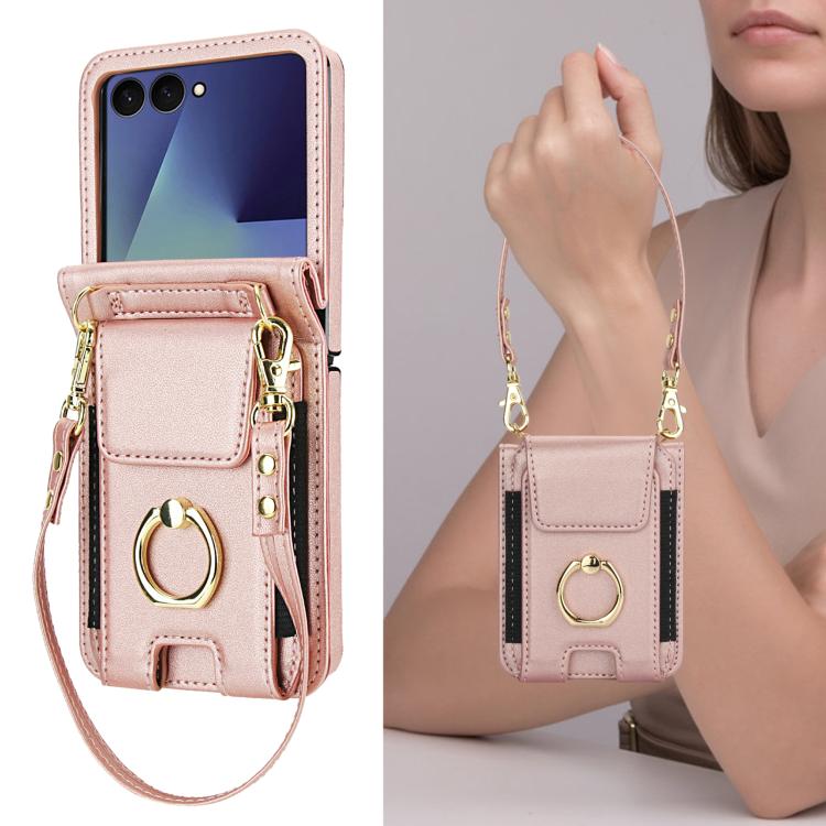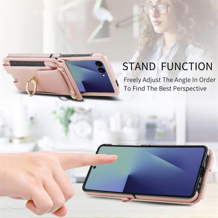 For Samsung Galaxy Z Flip7 5G Ring Holder Wallet Card Slot Leather Phone Case(Rose Gold)
