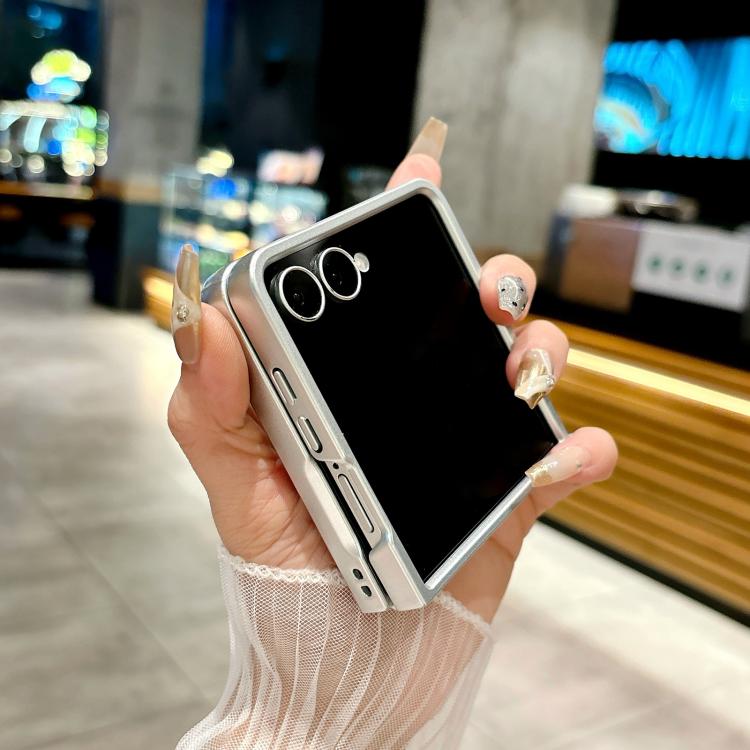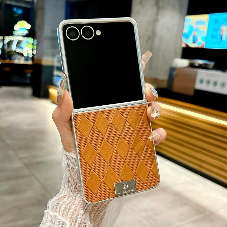 For Samsung Galaxy Z Flip7 5G Silver Edge Diamond Checkered Foldable Phone Case(Brown)