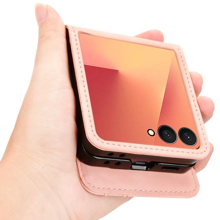 For Samsung Galaxy Z Flip7 5G Skin-feeling Half-split External Card Slot Folding Phone Case(Pink)