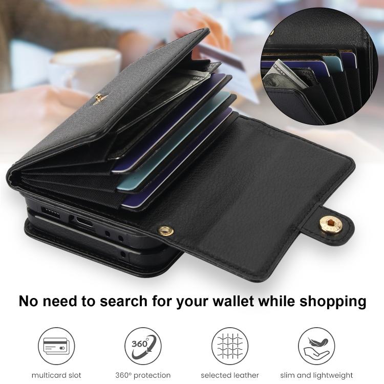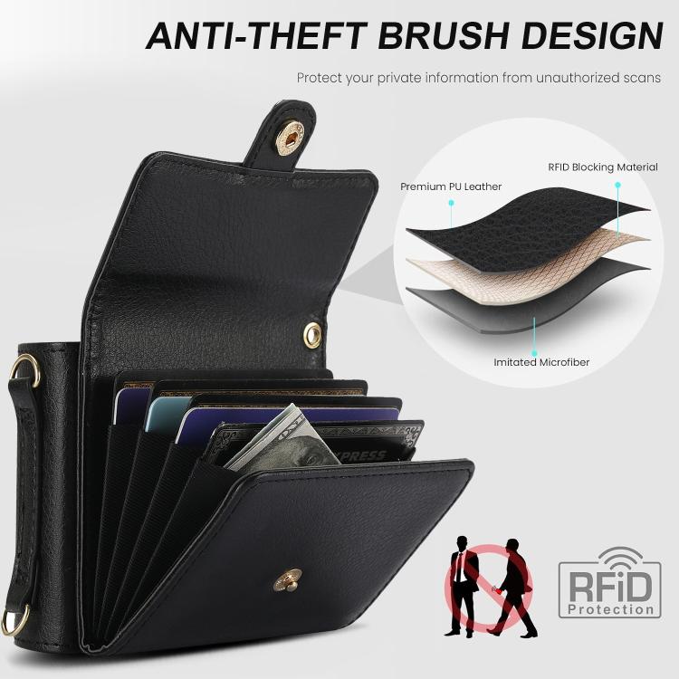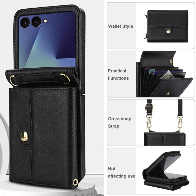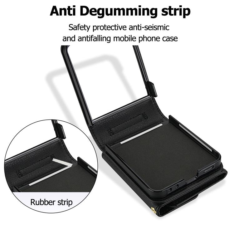 For Samsung Galaxy Z Flip7 5G Solid Color Backpack Wallet Card Slot RFID PU Phone Case(Black)