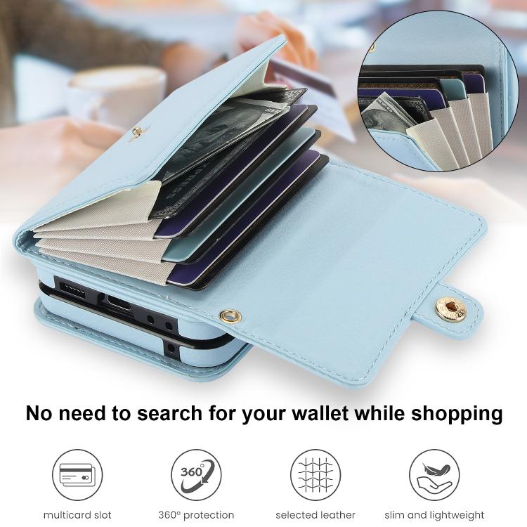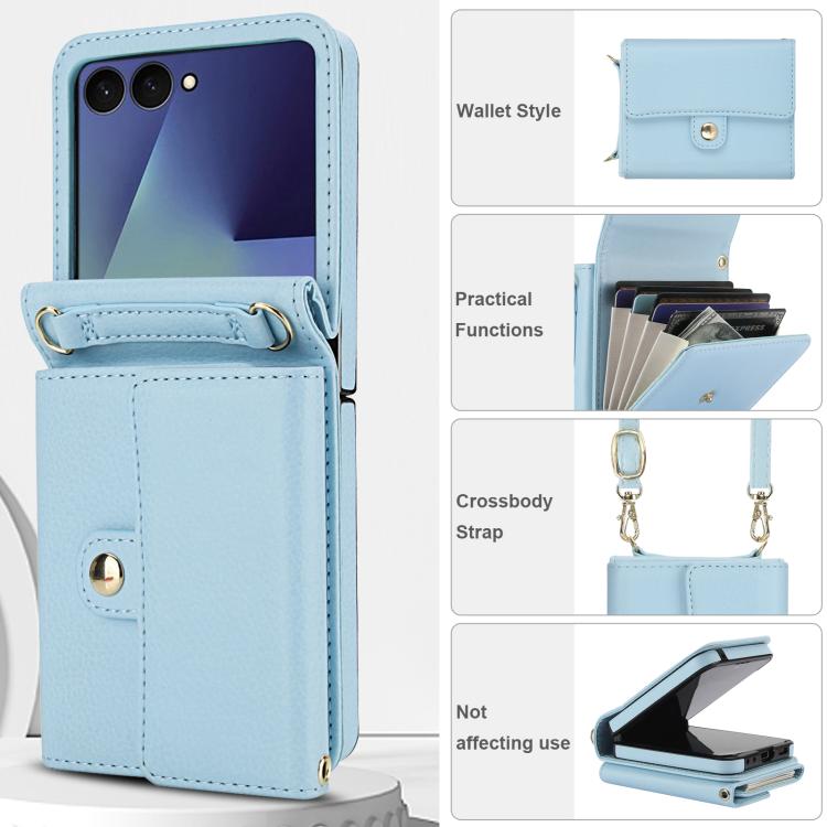 For Samsung Galaxy Z Flip7 5G Solid Color Backpack Wallet Card Slot RFID PU Phone Case(Blue)