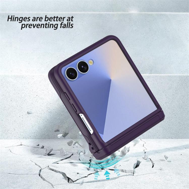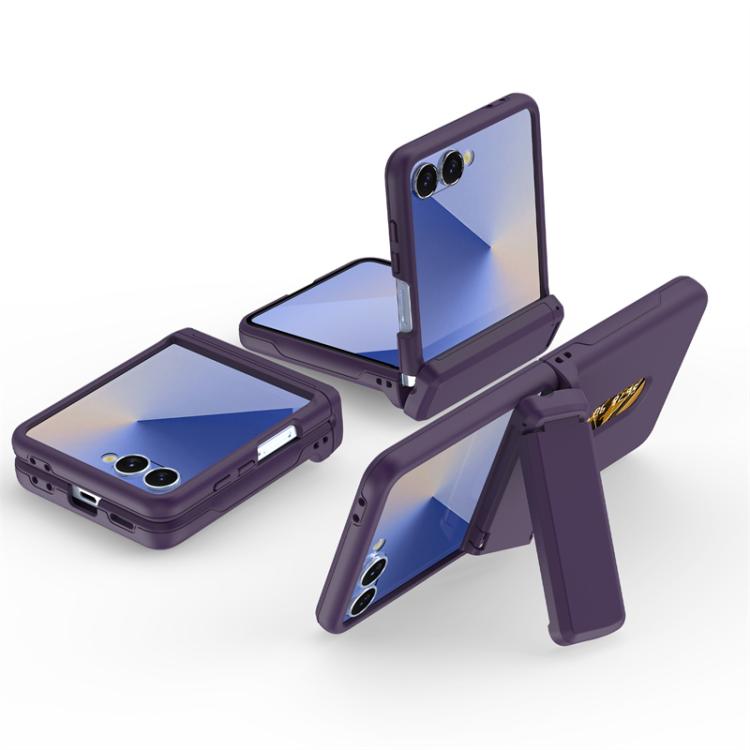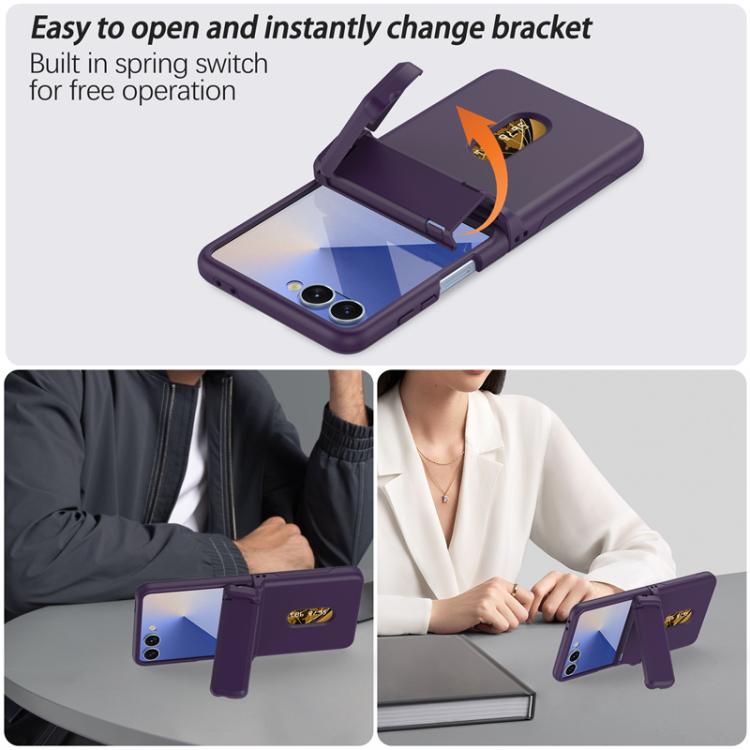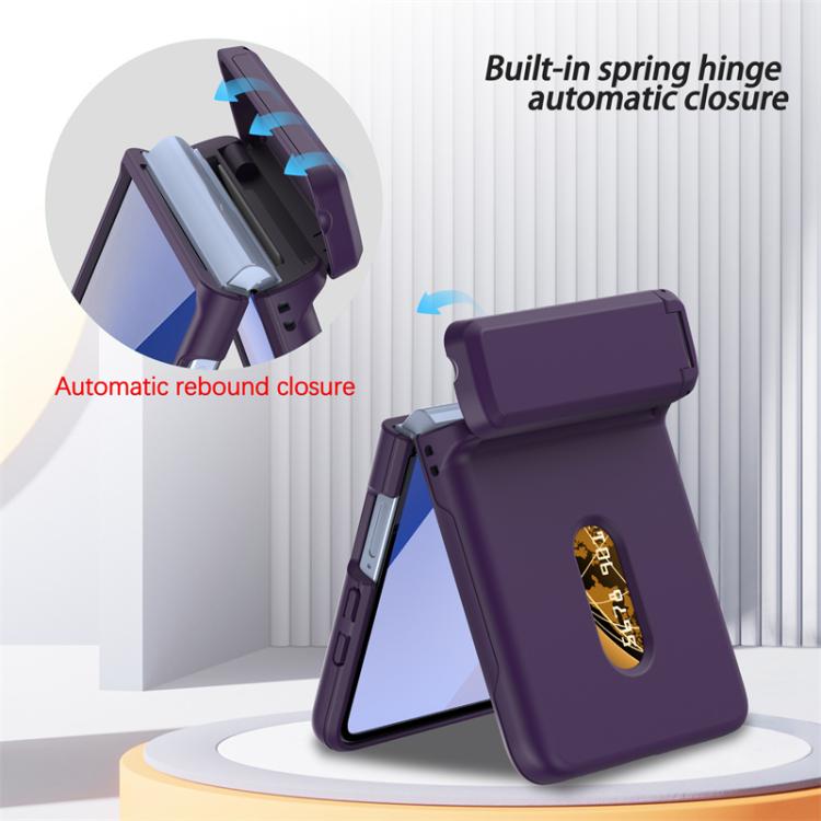 For Samsung Galaxy Z Flip7 5G Spring Rubber Chain Card Slot PC Folding Phone Case with Stand(Dark Purple)