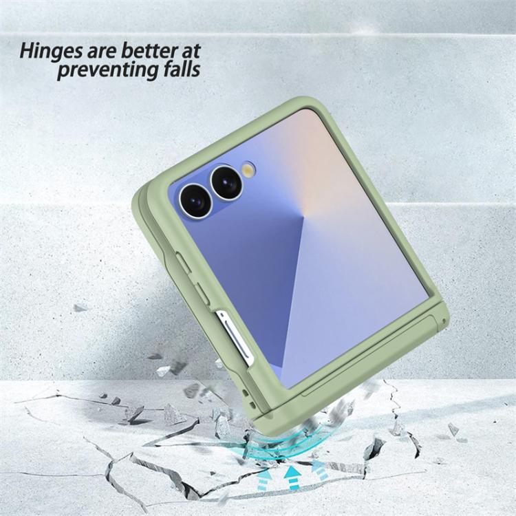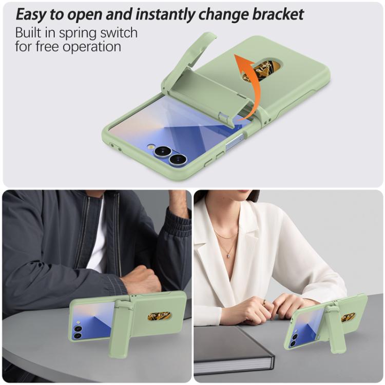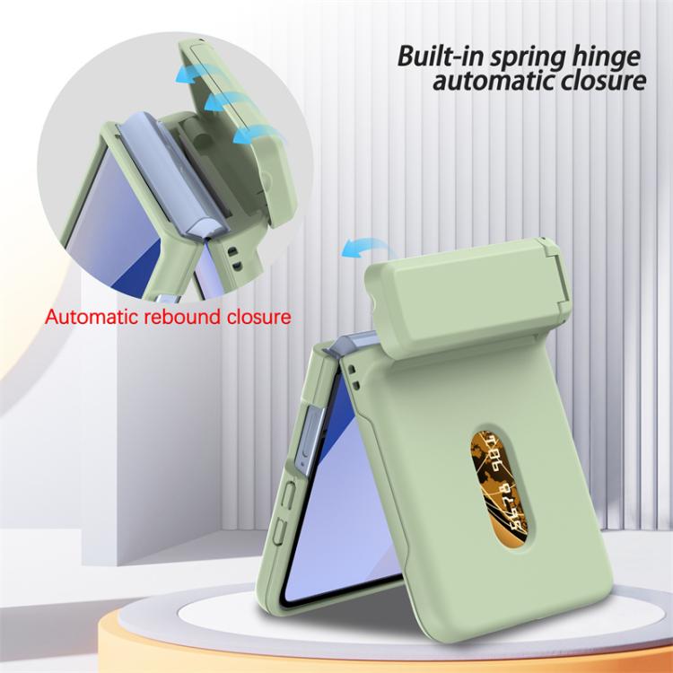 For Samsung Galaxy Z Flip7 5G Spring Rubber Chain Card Slot PC Folding Phone Case with Stand(Light Green)