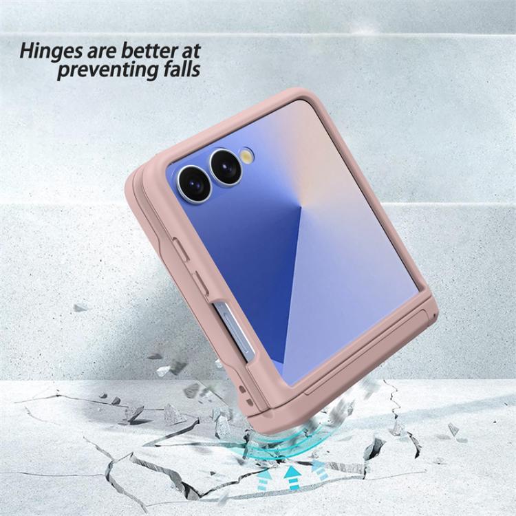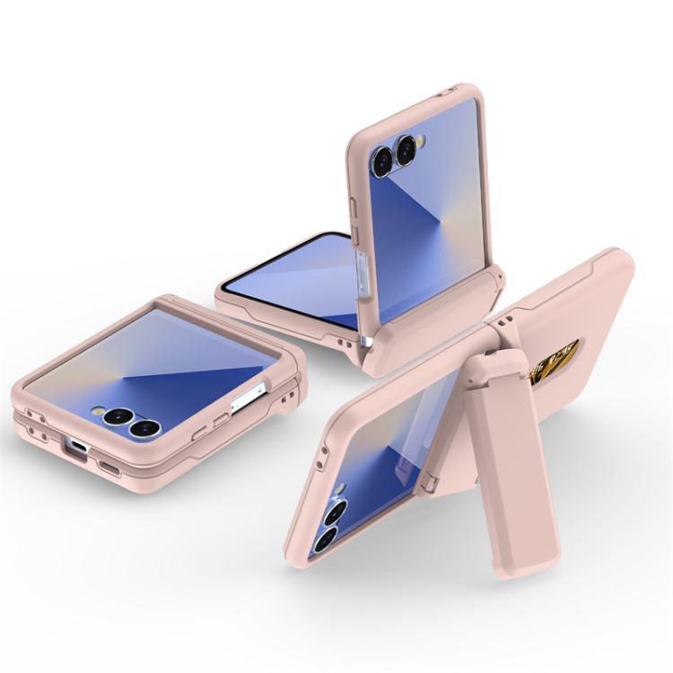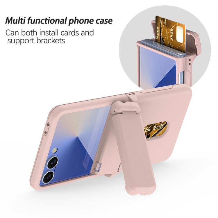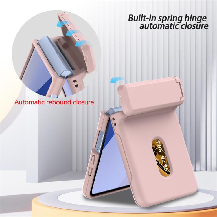 For Samsung Galaxy Z Flip7 5G Spring Rubber Chain Card Slot PC Folding Phone Case with Stand(Pink)