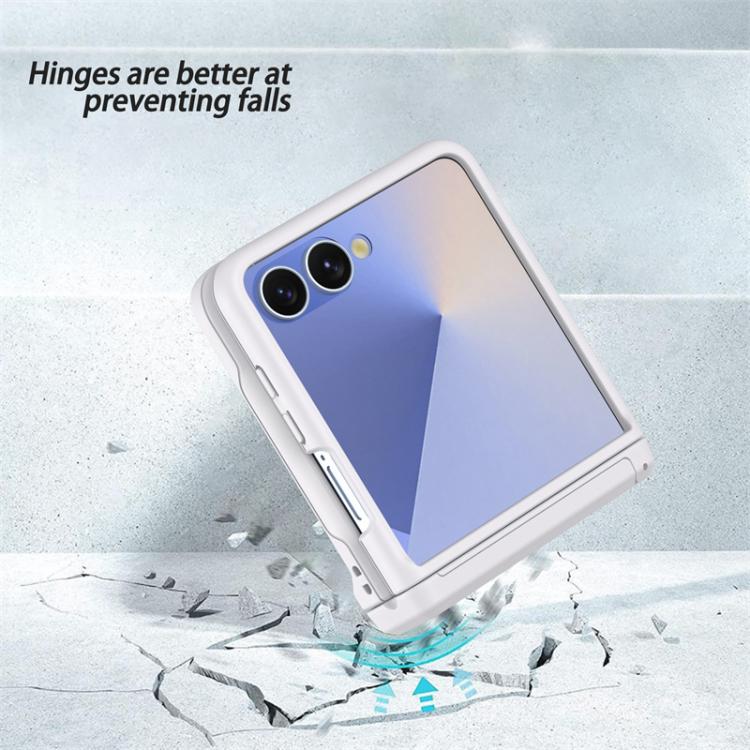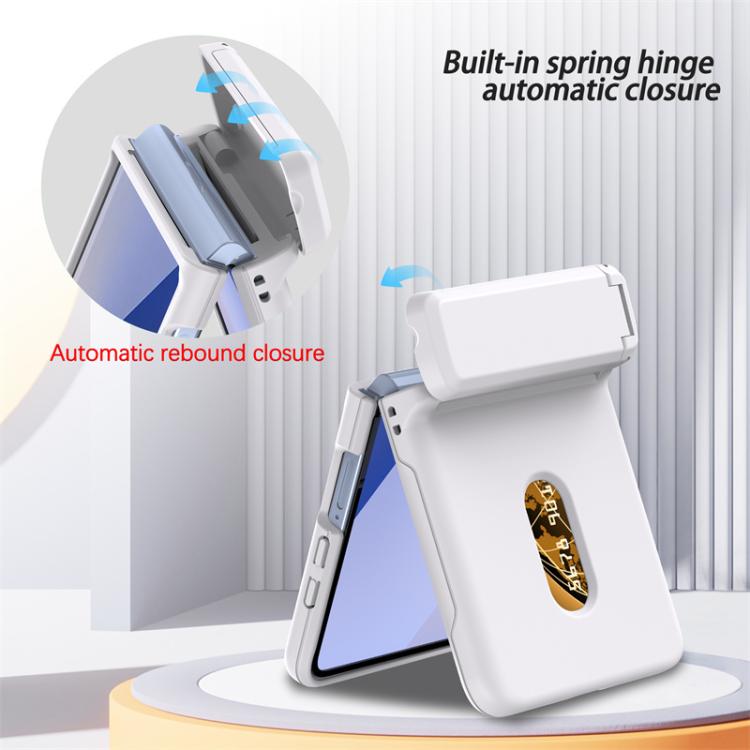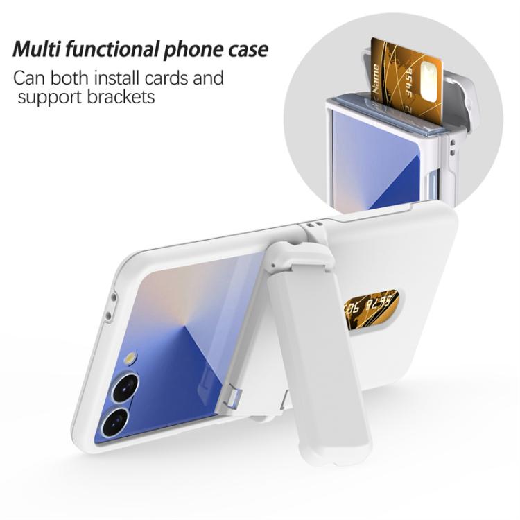 For Samsung Galaxy Z Flip7 5G Spring Rubber Chain Card Slot PC Folding Phone Case with Stand(White)