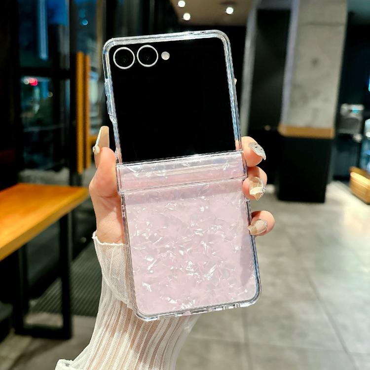 For Samsung Galaxy Z Flip7 5G Three-piece Set Pearlescent Shell Texture Phone Case(Pink)