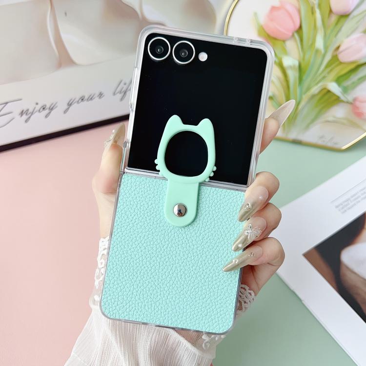 For Samsung Galaxy Z Flip7 5G Transparent Frame Jelly PU + PC Phone Case with Ring Holder(Mint Green)