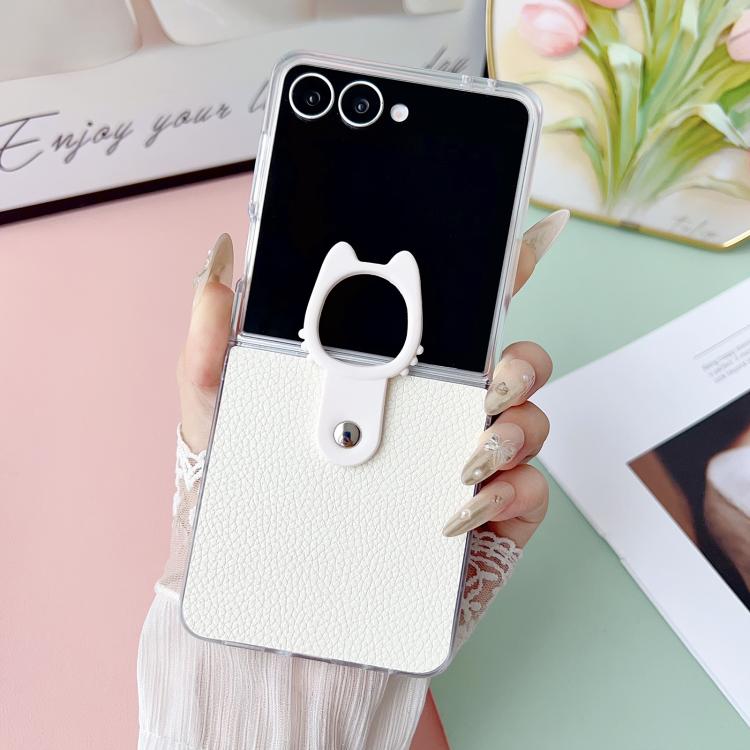For Samsung Galaxy Z Flip7 5G Transparent Frame Jelly PU + PC Phone Case with Ring Holder(White)