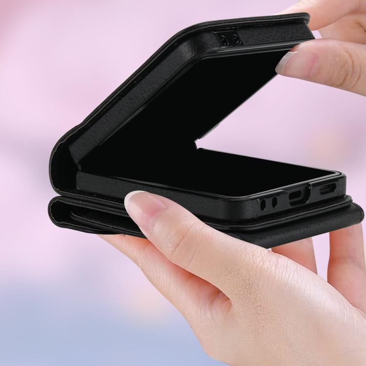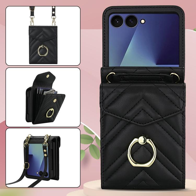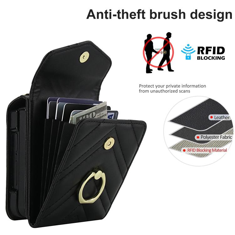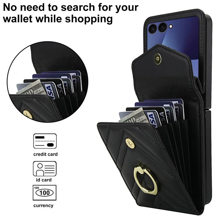 For Samsung Galaxy Z Flip7 5G V-shaped RFID Card Slot Phone Case with Ring Holder(Black)