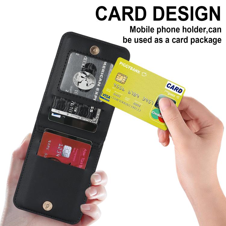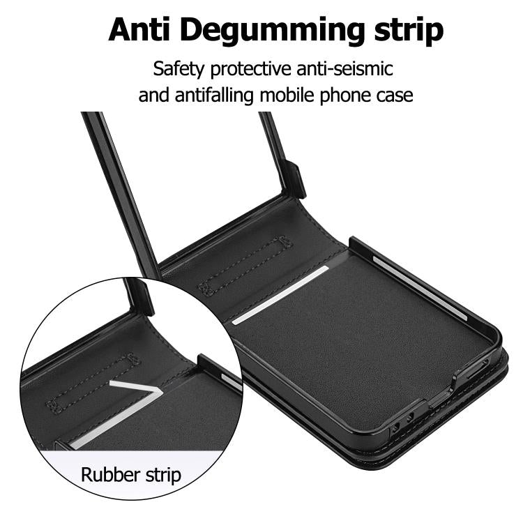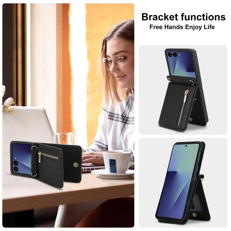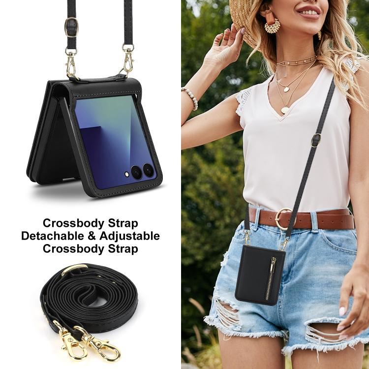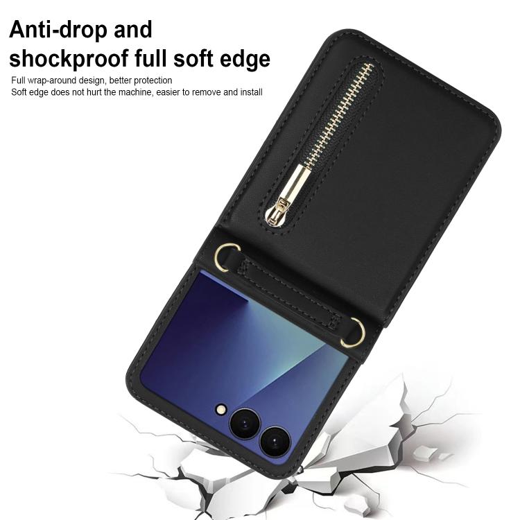 For Samsung Galaxy Z Flip7 5G Zipper Wallet Card Slot Leather Phone Case with Crossbody Strap(Black)