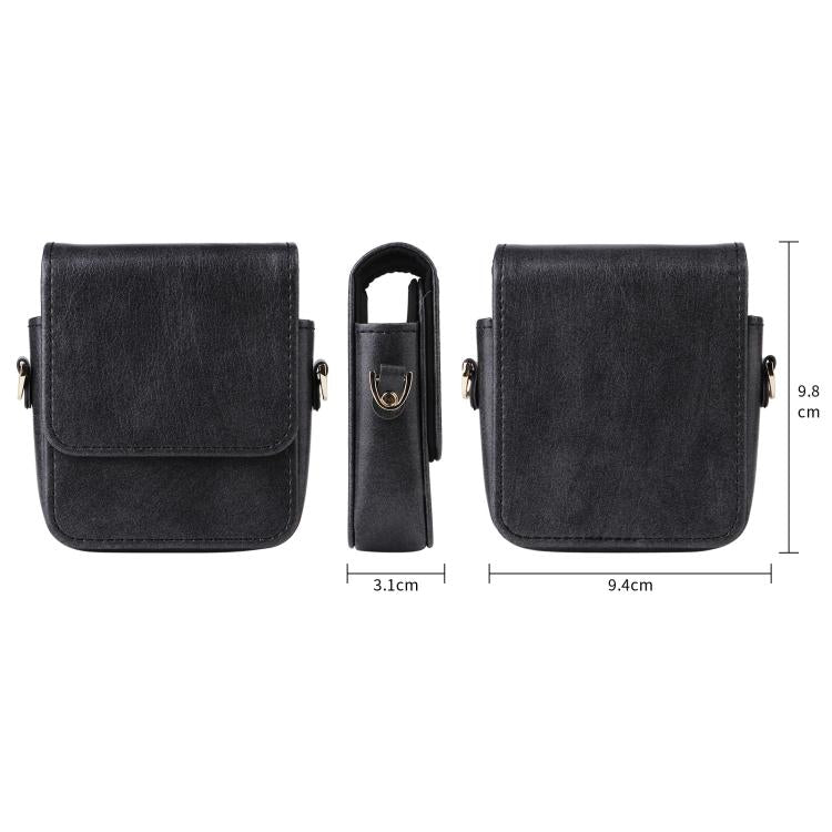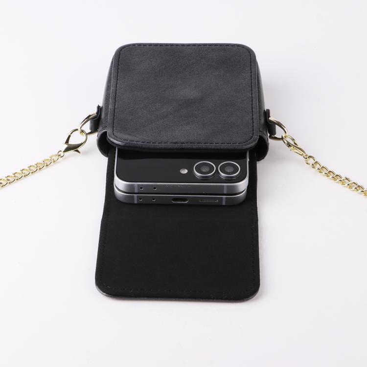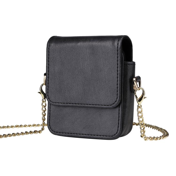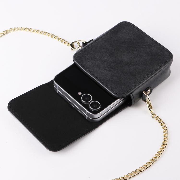 For Samsung Galaxy Z Flip7 / 6 / 5 / 4 Mini Long Shoulder Chain Crossbody Folding Magnetic Leather Phone Bag(Black)