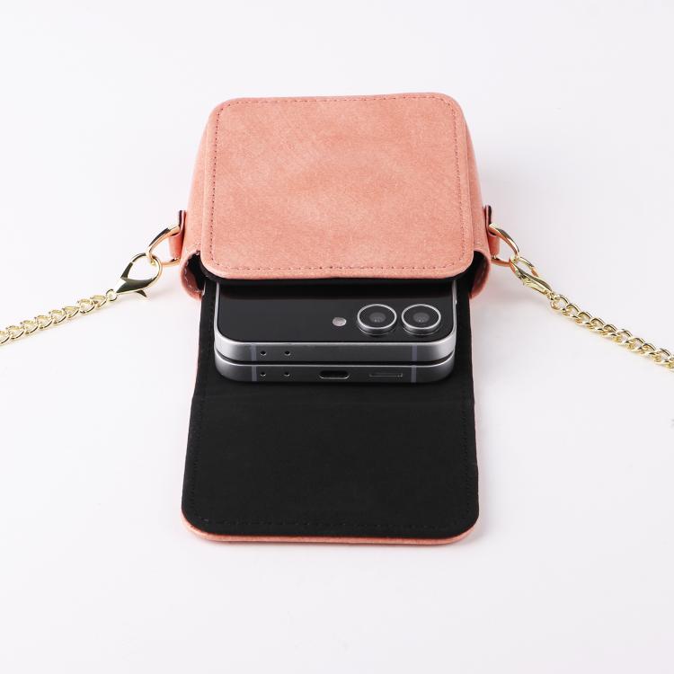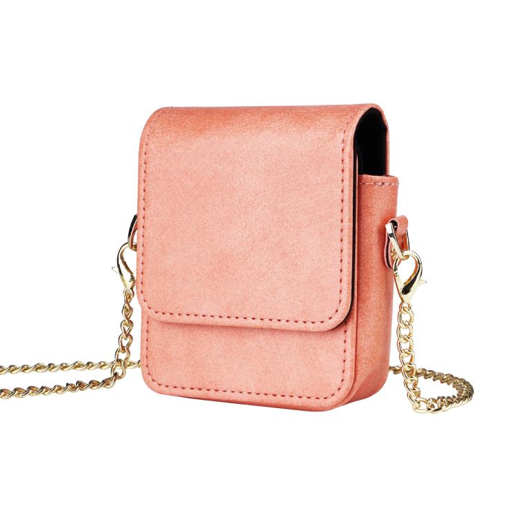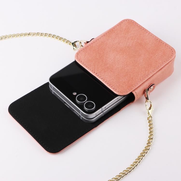 For Samsung Galaxy Z Flip7 / 6 / 5 / 4 Mini Long Shoulder Chain Crossbody Folding Magnetic Leather Phone Bag(Pink)