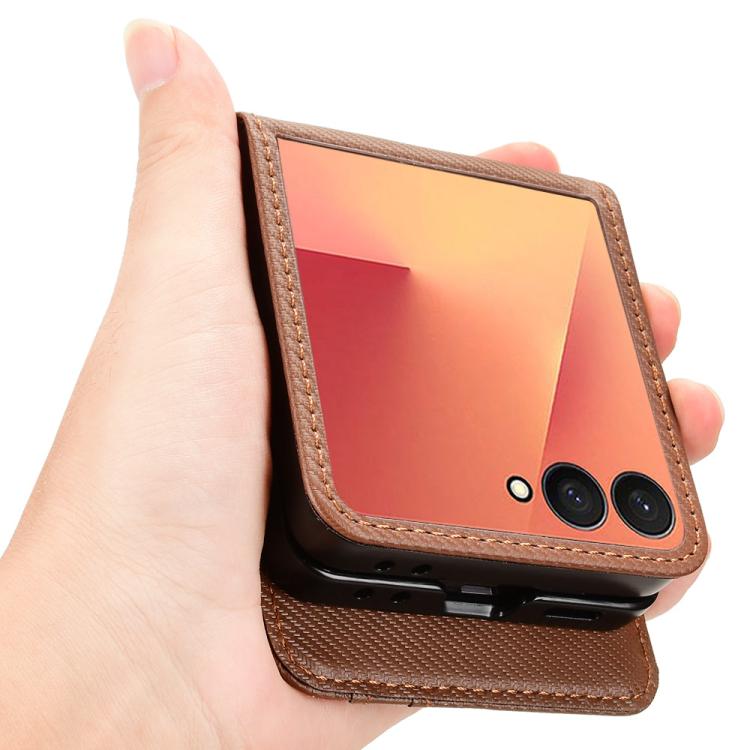 For Samsung Galaxy Z Flip7 Card Slot PU Leather PC Phone Case(Brown)