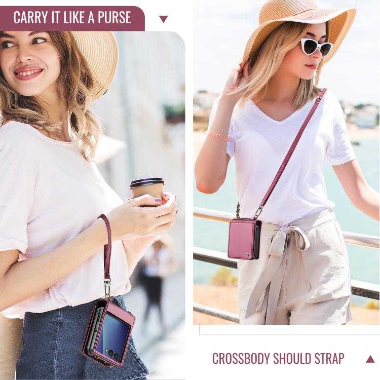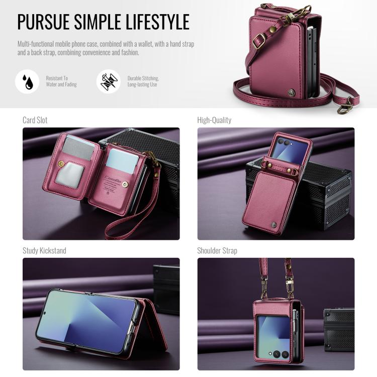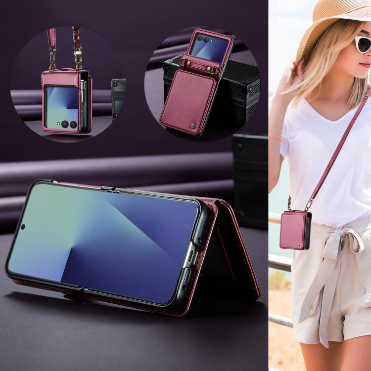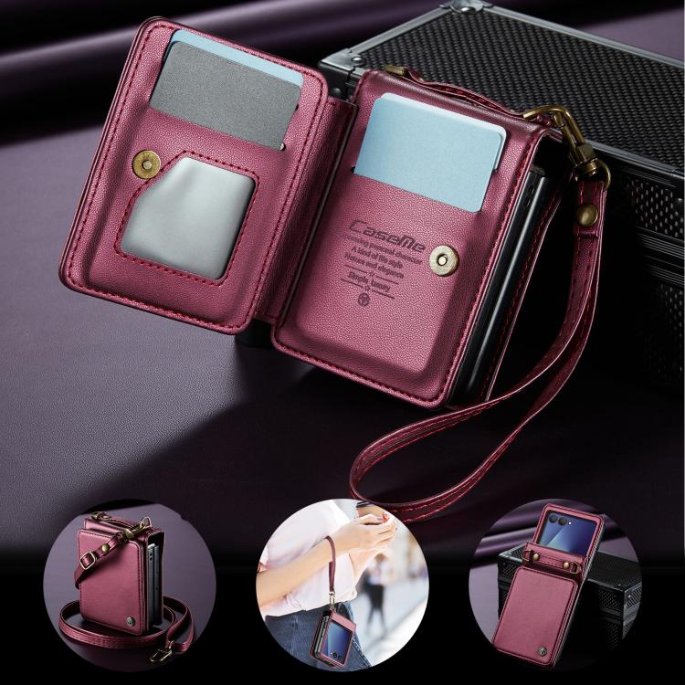 For Samsung Galaxy Z Flip7 CaseMe C22 Card Slots Holder RFID Anti-theft Phone Case(Red)