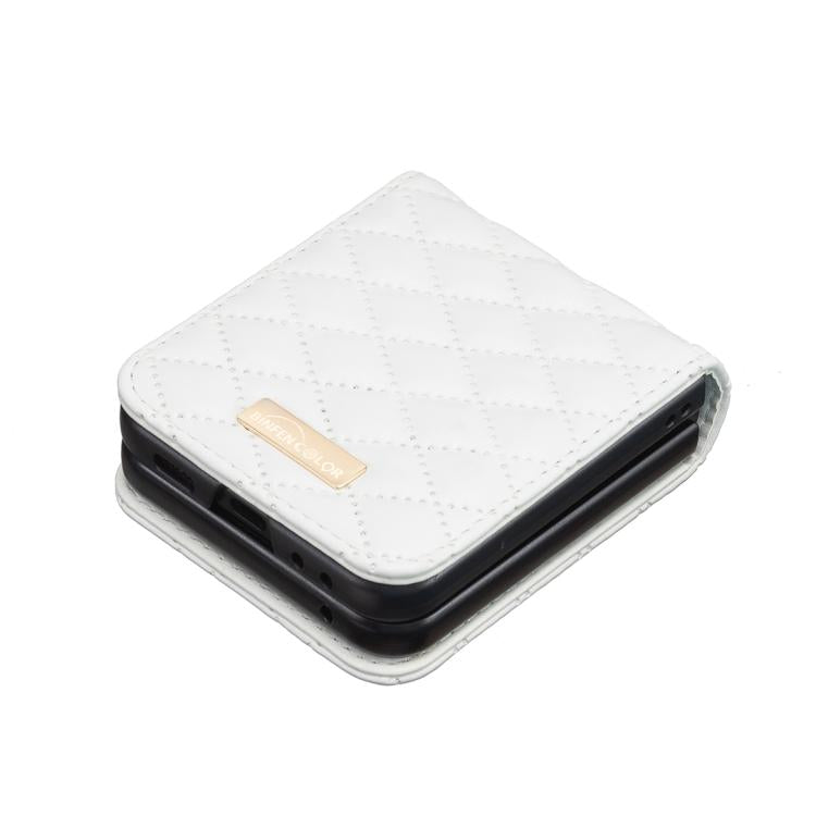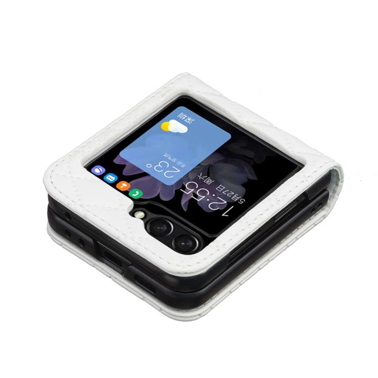 For Samsung Galaxy Z Flip7 Diamond Lattice PU + PC Shockproof Phone Case(White)